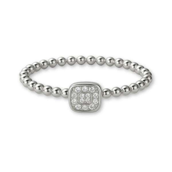Im Mittelpunkt steht ein pavégefasstes Quadrat aus 16 Diamanten in der Farbe Feinweiß (G) und mit kleinen Einschlüssen (si). Mit einem Gesamtgewicht von 0,92 Karat entfalten die Diamanten ein harmonisches Lichtspiel, das Reinheit, Anmut und moderne Weiblichkeit zum Ausdruck bringt.