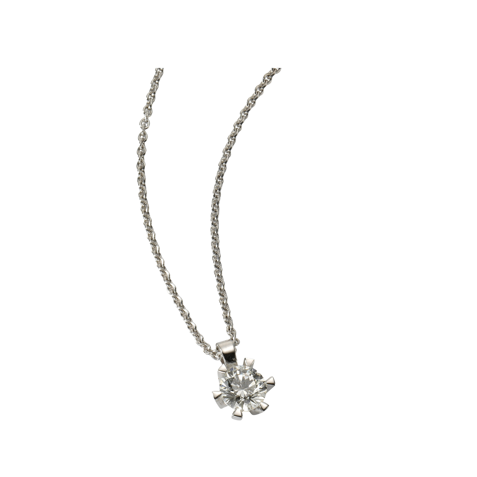Gefertigt aus 950er Platin, trägt der Anhänger einen funkelnden Brillanten, der von einer feinen 6er-Krappenfassung gehalten wird. Die filigrane Fassung lässt das Licht von allen Seiten in den Stein einfallen und bringt seine Brillanz voll zur Geltung. Der Anhänger ruht an einer edlen Ankerkette, die das klare, elegante Design perfekt ergänzt und dem Schmuckstück einen harmonischen Gesamteindruck verleiht.