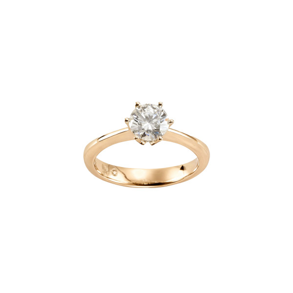 Gefertigt aus 750er Rotgold (18 Karat), vereint das Design klare Linien mit meisterlicher Handwerkskunst. Die harmonische Formgebung lenkt den Blick auf das Wesentliche: den funkelnden Brillanten im Zentrum. In einer modernen Zargenfassung sicher eingefasst, entfaltet der Stein seine ganze Strahlkraft und symbolisiert die Beständigkeit und Reinheit wahrer Liebe.