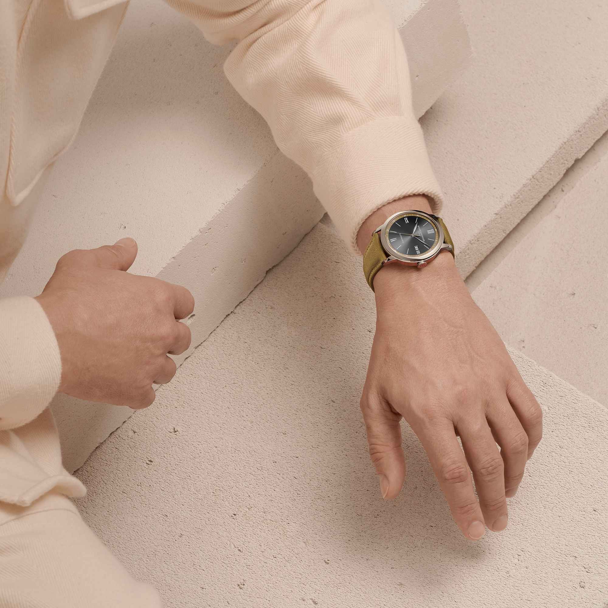 Schiefergrau mit sandfarbener Minuterie, sonnensatiniert