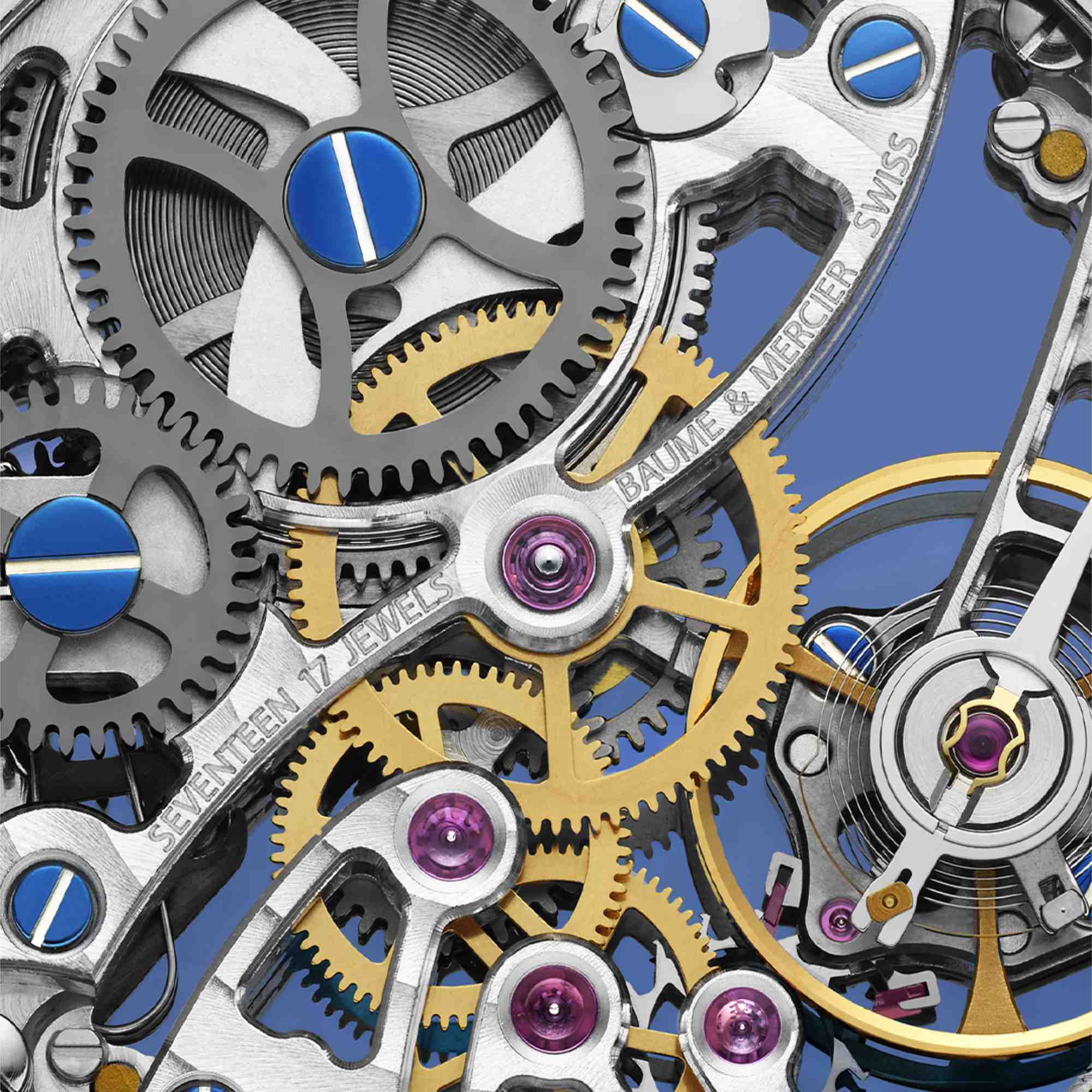 Ref. M0A10735 - Die 42 mm große Classima Special Edition verfügt über ein Handaufzugswerk mit skelettiertem Zifferblatt und kleiner Sekunde. Das blaue Saphirzifferblatt mit schwarzem Höhenring ermöglicht einen Blick auf das Uhrwerk. Es ergänzt sich hervorragend mit dem blauen Stoffarmband von Hollang & Sherry, das Erlesenheit mit modernem Stil verbindet.
