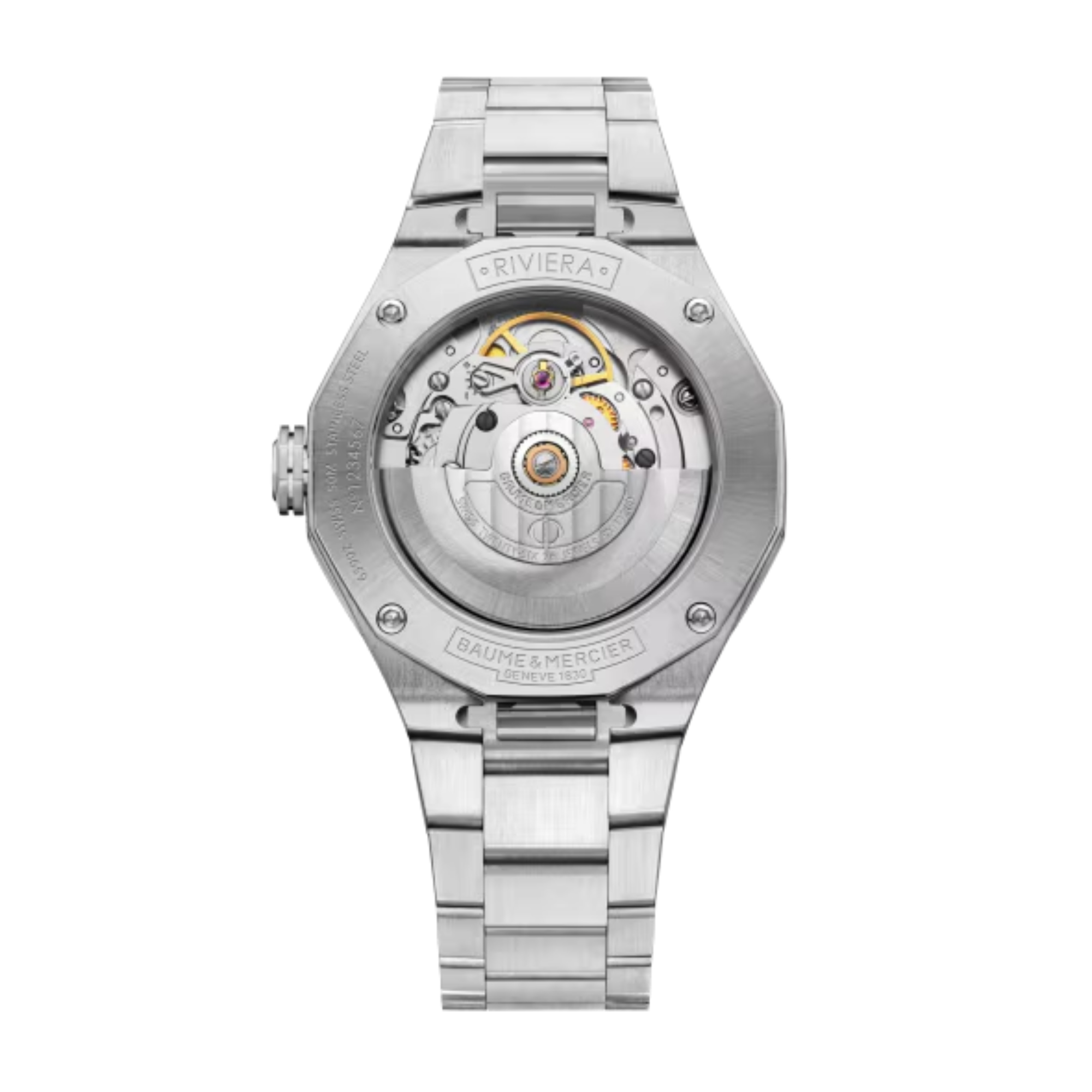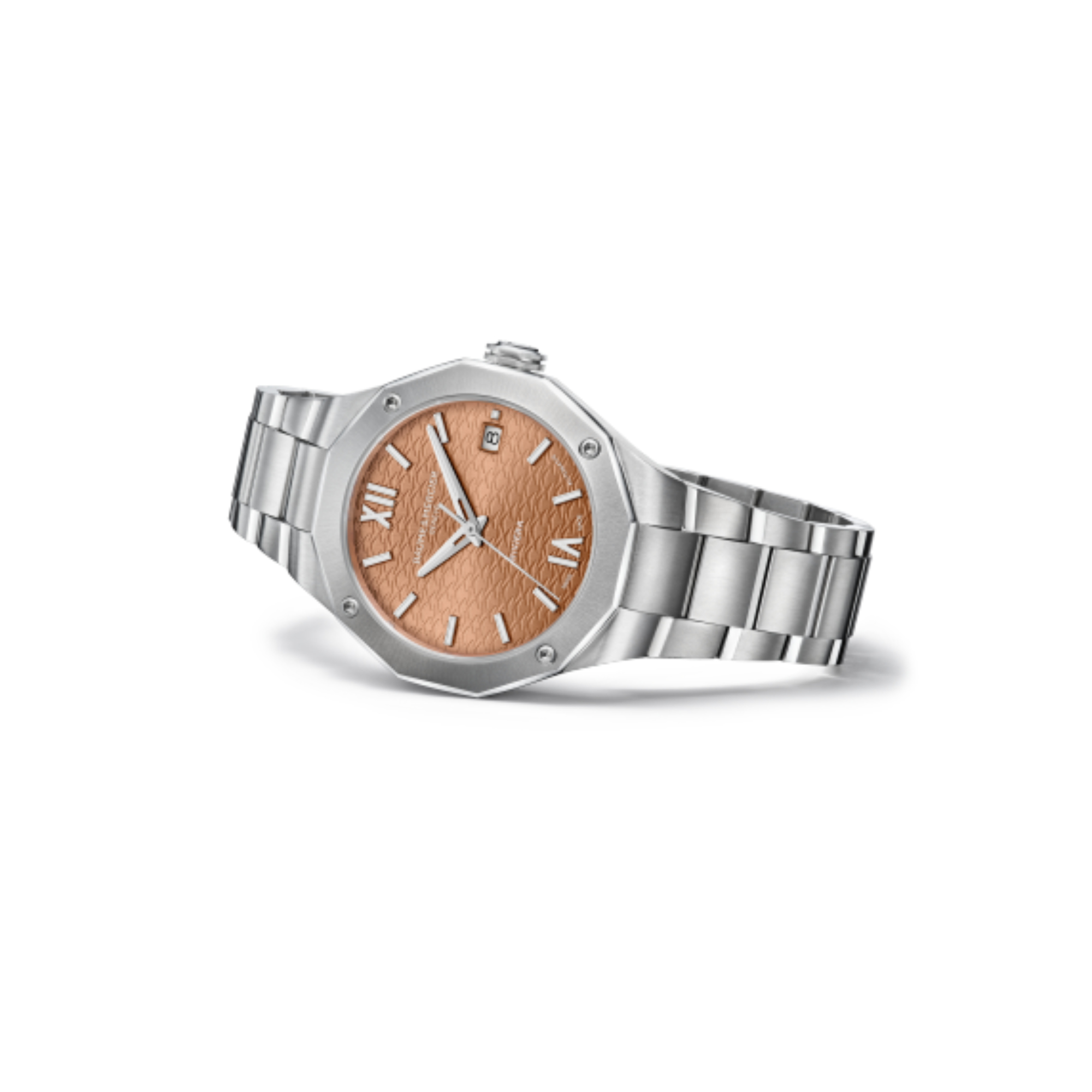 Ref. M0A10764 - Diese Riviera im 36-Millimeter-Format ist mit einem Automatikwerk für aktive, unabhängige Frauen ausgestattet. Mit charakteristischem zwölfeckigem Gehäuse, terracottafarbenem Zifferblatt mit Dekor und auswechselbarem Metallarmband vereint dieser Zeitmesser unkonventionelle Eleganz und Schweizer Präzision.