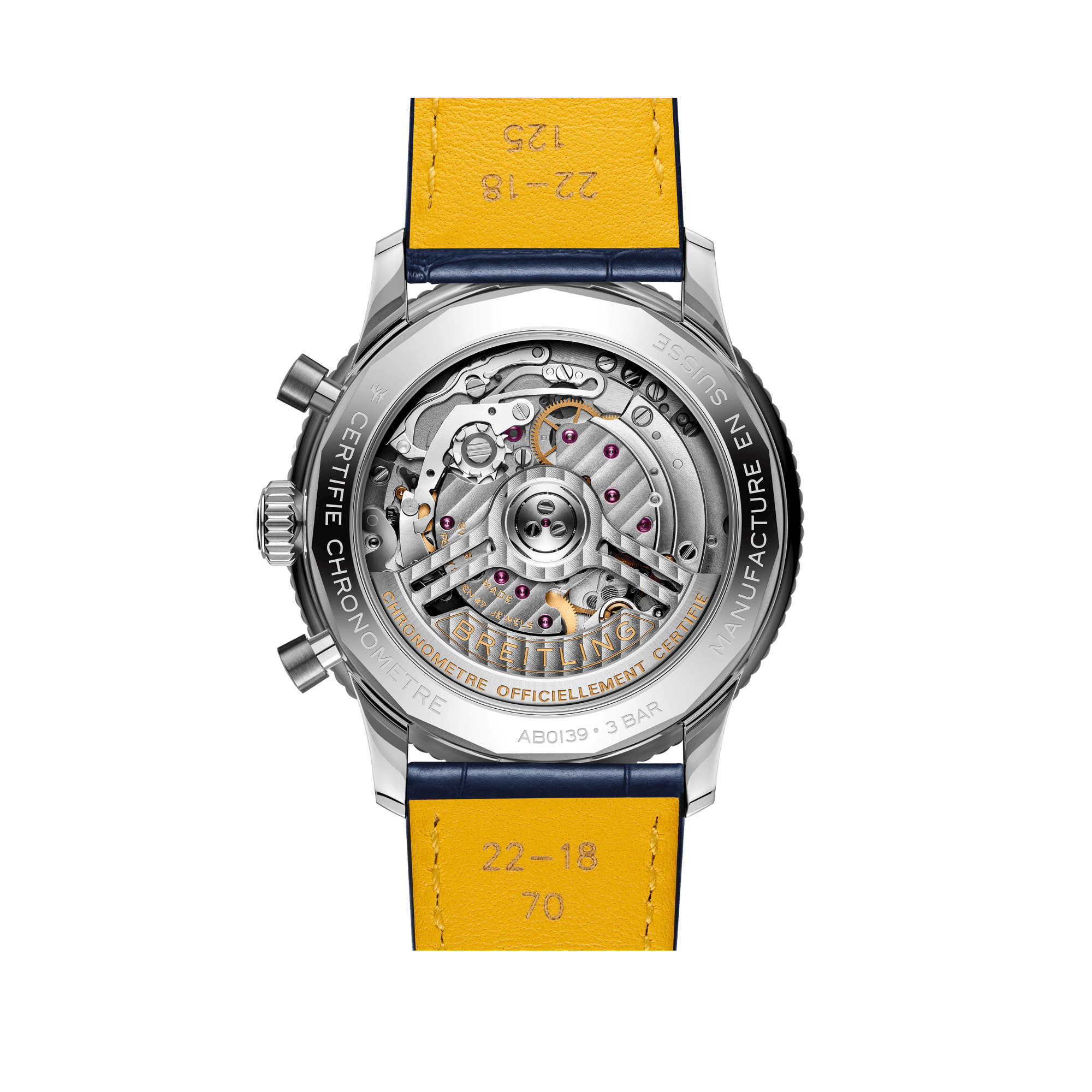 Ref. AB0139631C1P1 - Berühmtheiten wie Miles Davis oder Serge Gainsbourg gehörten ebenfalls zu ihren Fans und bewiesen damit, dass die Navitimer nicht nur stilvoll, sondern auch funktional war. Seit ihrer Markteinfürung vor 70 Jahren wurden diverse Modelle dieser Breitling Ikone lanciert, doch diese neue Navitimer überzeugt mit ihren klassischen Eigenschaften, die mithilfe moderner Verbesserungen noch verfeinert wurden. Ein abgeflachter Rechenschieber und ein gewölbtes Glas schaffen den Eindruck eines schlankeren Profils. Der Wechsel von polierten und gebürsteten Metallelementen sorgt für ein schimmerndes und dennoch dezentes Aussehen. Es sind vor allem die neuen Farben in Blau-, Grün- und Kupfertönen, die die aktualisierten Zifferblattoptionen definieren. Und wenn es eine Neuerung gibt, die für Nostalgie sorgen wird, sind es die AOPA-Flügel, die nun wieder dort sind, wo sie ursprünglich waren – bei 12 Uhr. Seit bereits 70 Jahren erfreut sich die Original-Fliegeruhr grosser Beliebtheit bei Piloten und Trendsettern gleichermassen. Getragen von Astronauten im Weltraum und von den grössten Stars der Welt, handelt es sich um den legendärsten Zeitmesser von Breitling und um eine der unverwechselbarsten Uhren aller Zeiten.
