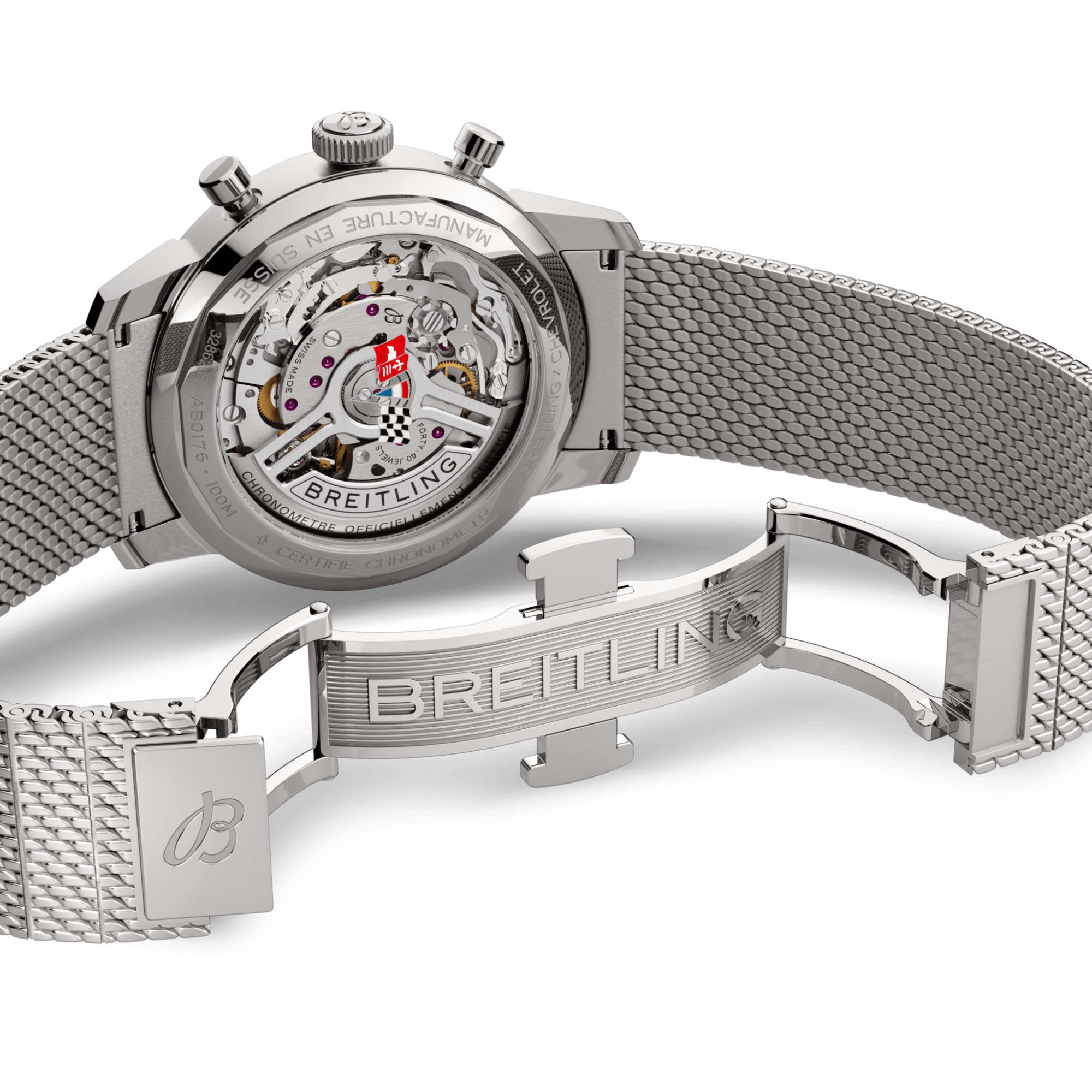 Der Ford Mustang der ersten Generation, der von 1964 bis 1974 produziert wurde, war das Auto der Stunde, wenn es darum ging, im coolen Amerika der 1960er Jahre auf die Strasse zu gehen. Die lebende Legende wird nach wie vor produziert, doch Autoliebhaber wissen, dass die allerersten Modelle, die den ungezähmten Geist der 1960er Jahre einfingen, auch die coolsten waren. Die Top Time B01 Ford Mustang verfügt über die Farben und das Emblem ihres Oldtimer-Pendants sowie über ein perforiertes Lederarmband, eine Tachymeterskala und kontrastierende «Squircle»-Zifferblätter (nicht ganz quadratisch, nicht ganz rund), die die besondere Atmosphäre klassischer Armaturenbretter erzeugen. Zudem hat sie einen Motor unter der Haube, mit dem man sich sehen lassen kann: das aussergewöhnliche Breitling-Manufakturkaliber 01.
