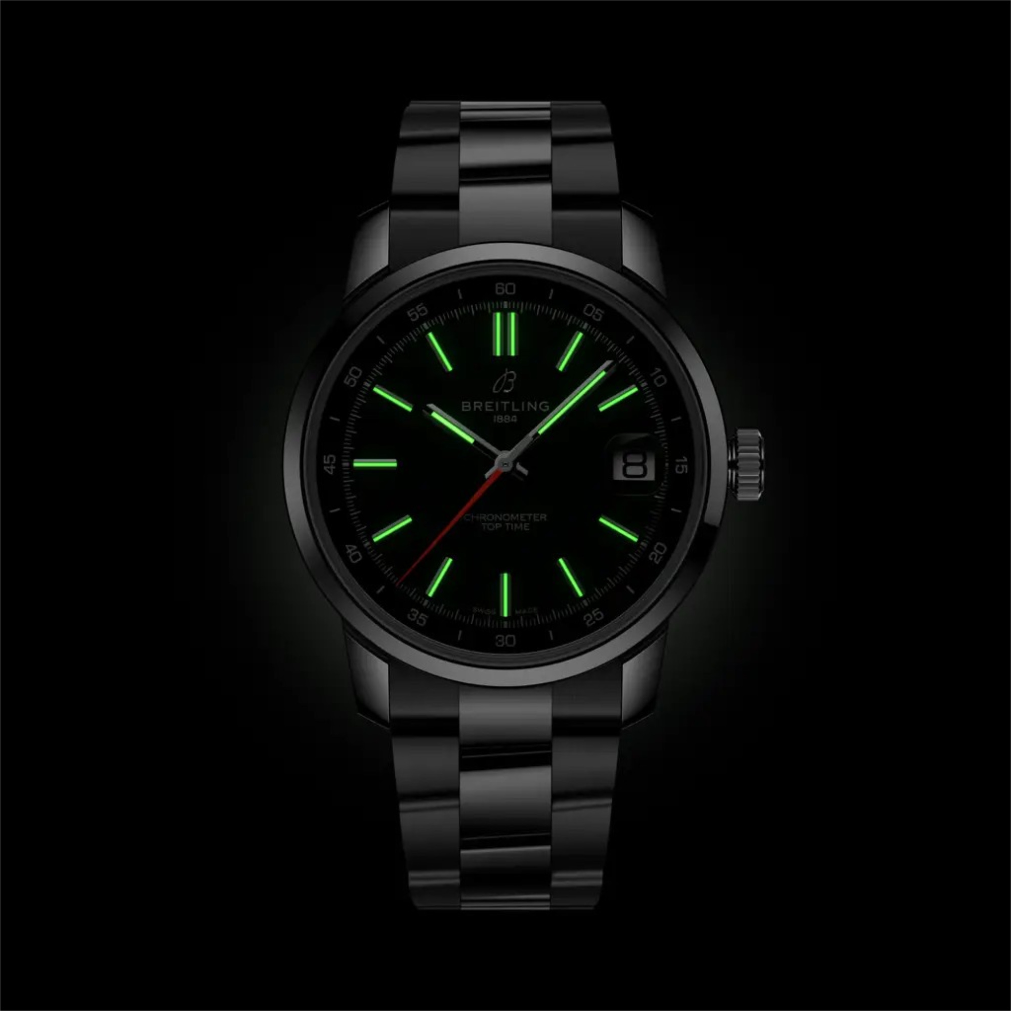 Die im Jahr 2025 neu lancierte Top Time B31 stellt das Debüt des Manufakturwerks B31 im Hause Breitling dar. Das 38-mm-Gehäuse bleibt der DNA der Top Time treu und gewährleistet einen makellosen Stil, der an jedes Handgelenk passt. Die Top Time B31 vereint Retro-Ästhetik mit modernem Anspruch. Das Design des grünen Zifferblatts ist von den Armaturenbrettern der Oldtimer inspiriert, während das 38-mm-Gehäuse ein Gleichgewicht zwischen Vintage-Proportionen und modernem Design schafft und dank seiner universellen Grösse an jedes Handgelenk passt. Komplettiert wird die Top Time B31 von einem dreireihigen Edelstahlarmband. Die Top Time B31 Uhr von Breitling zelebriert Individualität und Abenteuer, egal ob auf offener Strasse oder einfach im Alltag.