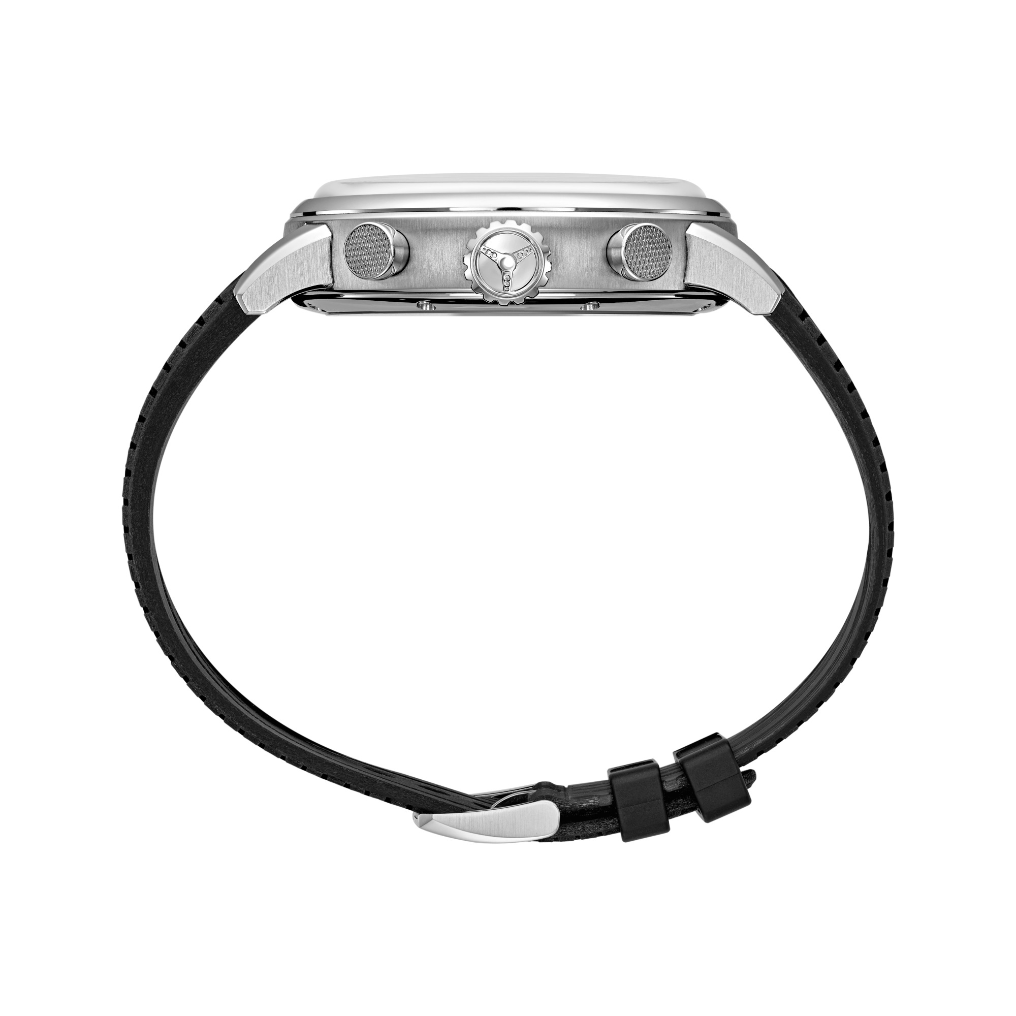In der galvanisch hergestellten Farbe „Nero Corsa“, Perlschliff, mit Super-LumiNova belegte arabische Ziffern