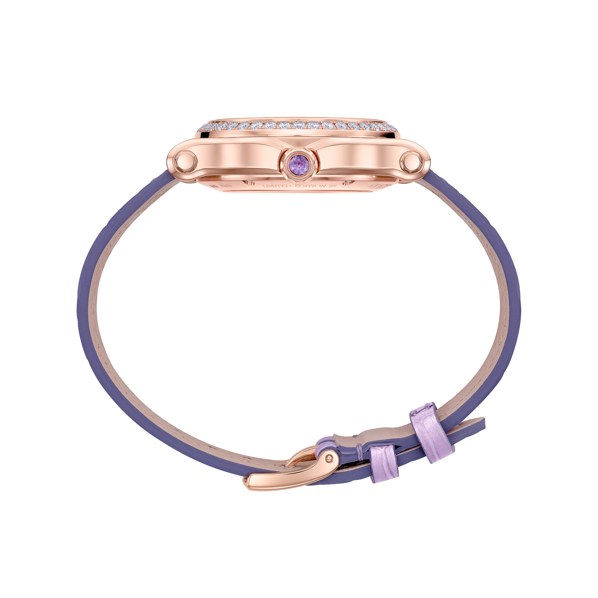 Violettfarbenes Alligatorlederarmband mit Dornschließe aus 18 Karat Roségold