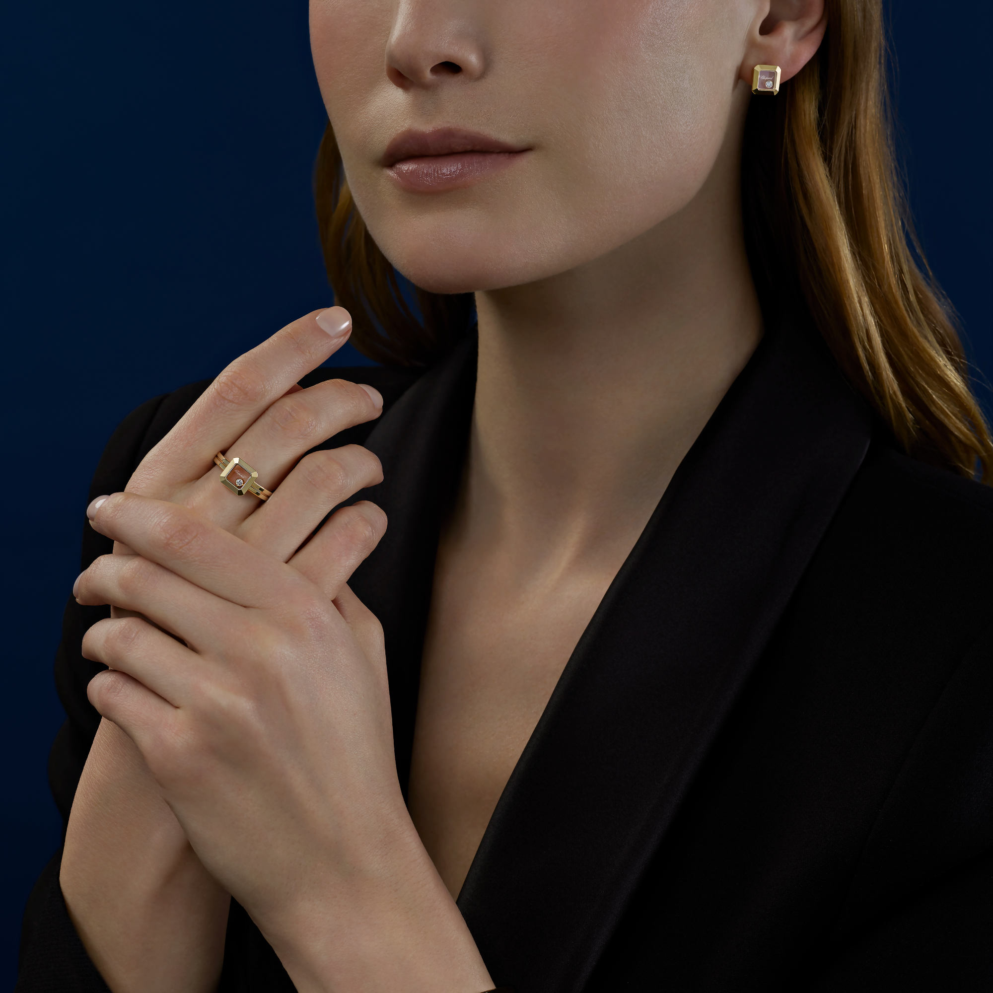 Ref. 83A114-0001 - Happy Diamonds Schmuckkreationen sind so einzigartig wie verspielt. Die tanzenden Diamanten bewegen sich völlig frei zwischen zwei Saphirgläsern, wodurch sie ihr ganzes Funkeln entfalten können. Little Diamonds Do Great Things.