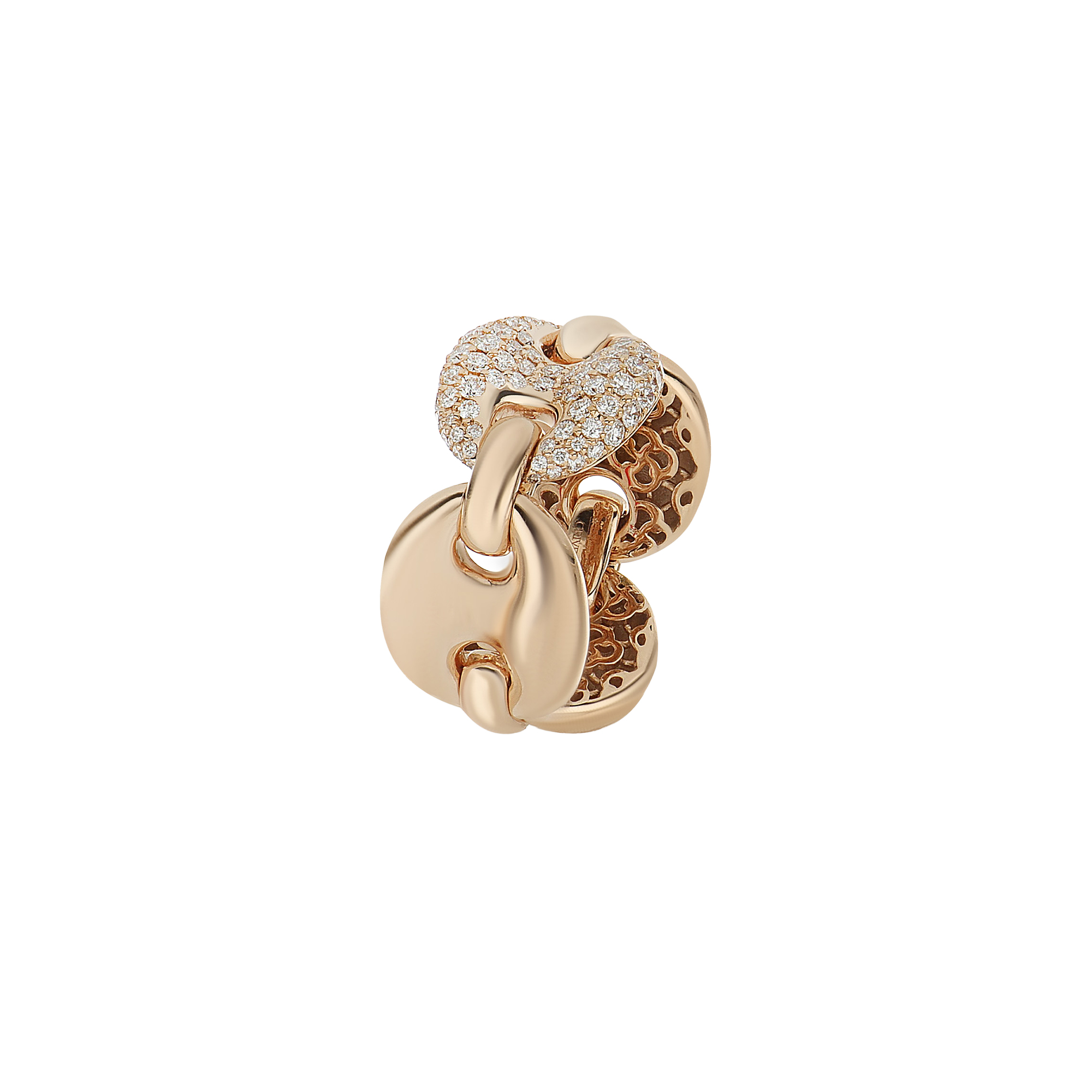 Gefertigt aus hochwertigem 750 Roségold begeistert der Ring durch seinen warmen, edlen Farbton, der die funkelnden Diamanten besonders harmonisch zur Geltung bringt. Insgesamt 84 Diamanten im Brillantschliff mit einem Gesamtgewicht von 0,9 Karat sind fein im Pavé gefasst und verleihen dem Ring eine intensive Strahlkraft sowie eine elegante, luxuriöse Ausstrahlung. Die präzise Verarbeitung und die ausgewogene Kombination aus Gold und Diamanten spiegeln die hohe Handwerkskunst wider, für die Crivelli international geschätzt wird.
