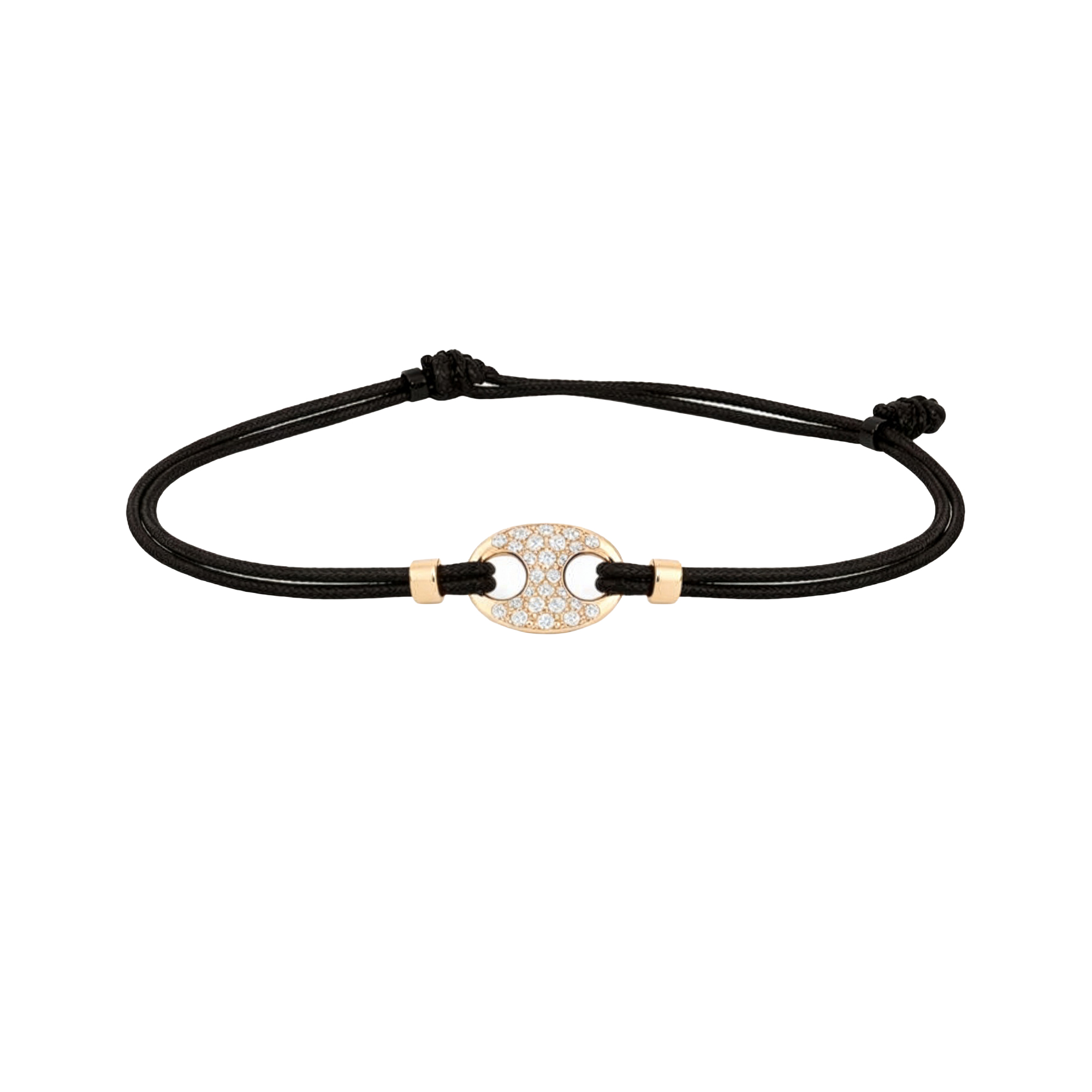 26 Diamanten im Brillantschliff mit einem Gesamtgewicht von 0,25 Karat sorgen für ein feines, lebendiges Funkeln. Die präzise gefassten Diamanten verleihen dem Armband eine subtile Luxusnote, die perfekt mit dem minimalistischen Design harmoniert. Das schwarze Textilband bildet einen spannenden Kontrast zum Roségold und verleiht dem Schmuckstück eine moderne, urbane Leichtigkeit.