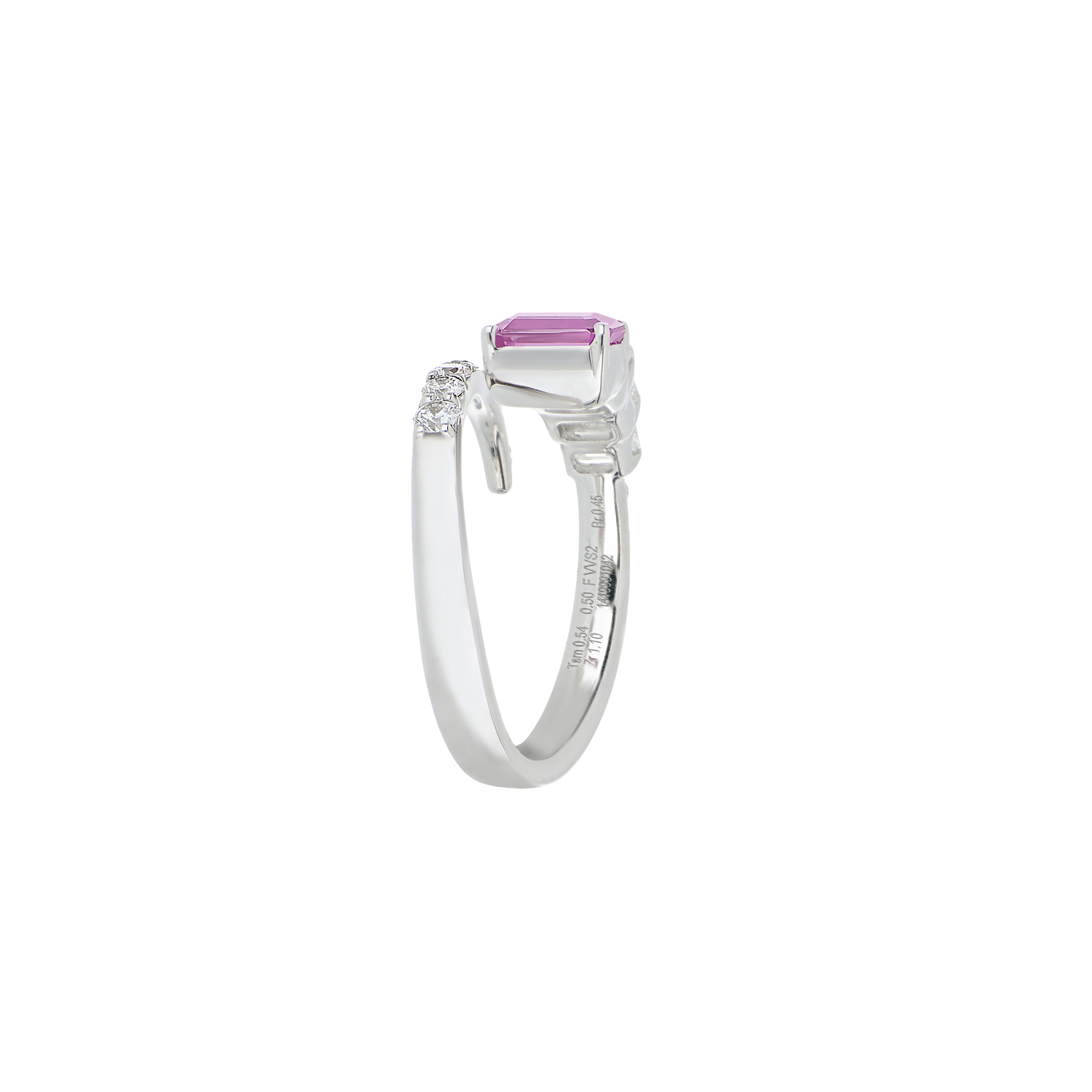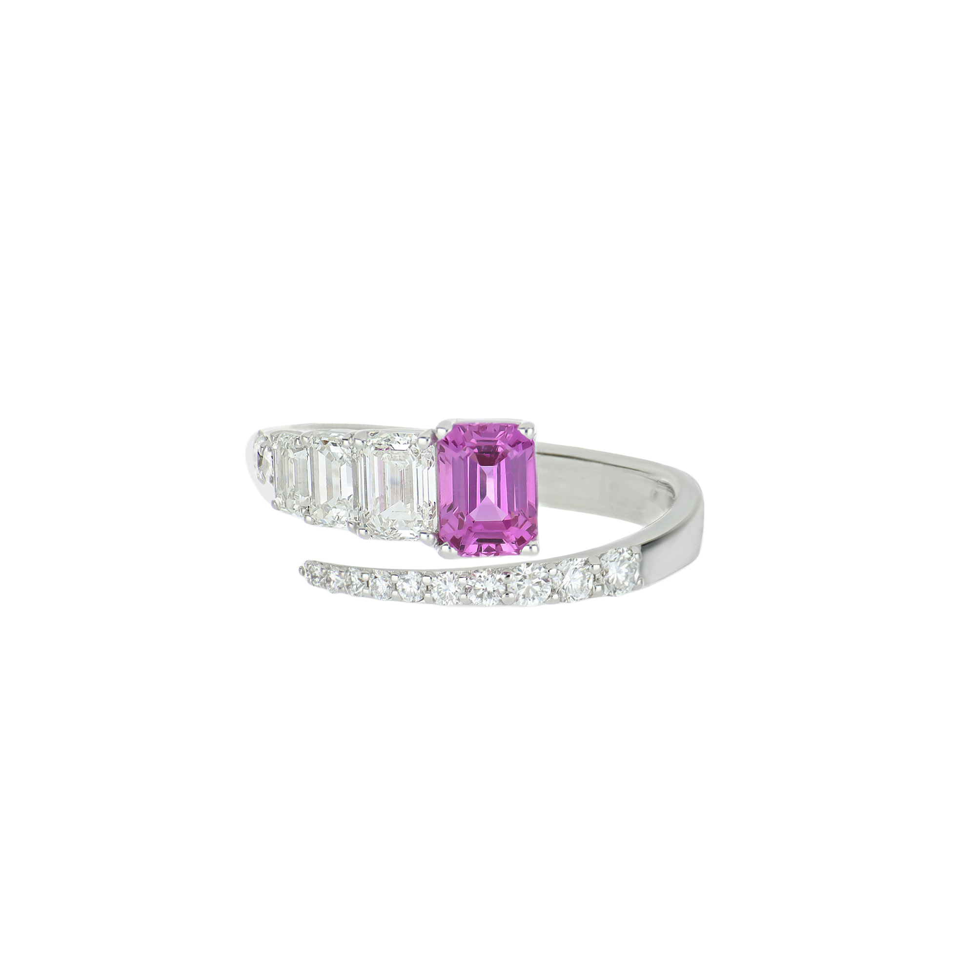 1 rosafarbener Saphir im Smaragdschliff, 1,1 Karat gesamt