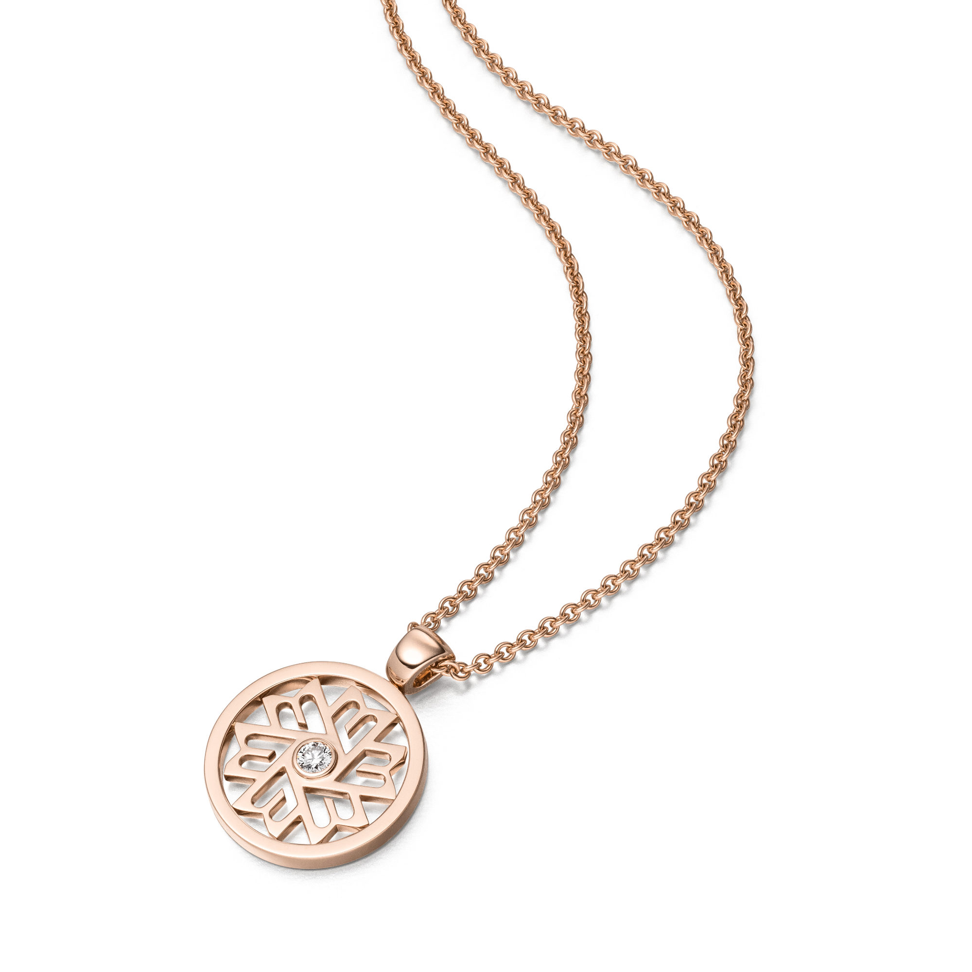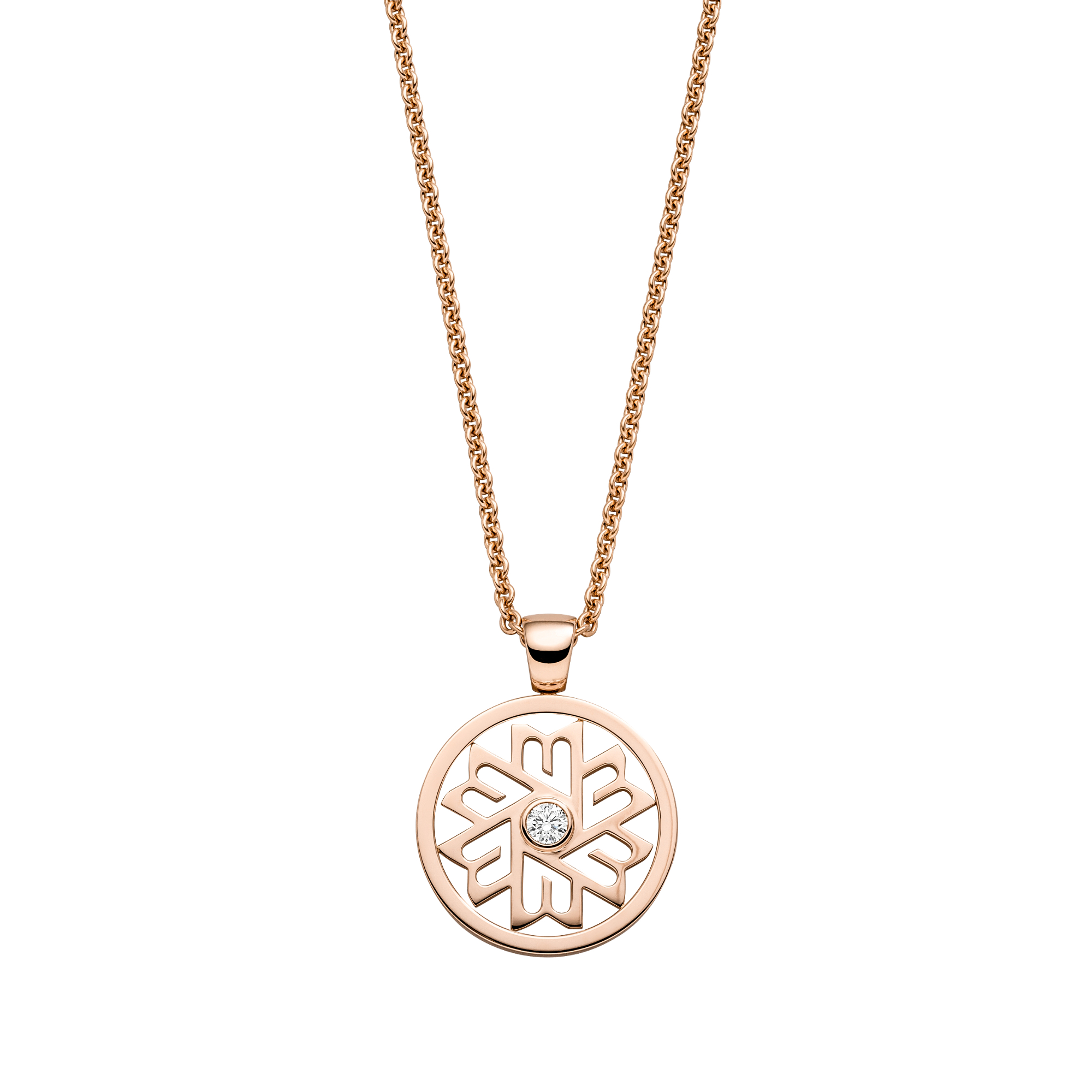 Diese elegante Mill River Halskette mit Anhänger von Danuvina by Mühlbacher vereint zeitlose Symbolik mit meisterhafter Handwerkskunst. Gefertigt im hauseigenen Atelier von Mühlbacher, strahlt das Ensemble in edlem 750er Roségold. Der runde Anhänger greift das charakteristische Mill River-Motiv von Danuvina auf – eine stilisierte Mühlenrad-Form mit zarter Offenheit – und wird durch einen zentral gefassten Diamanten mit einem Gesamtgewicht von 0,25 Karat veredelt. Die puristische Eleganz des Anhängers wird durch eine klassische Ankerkette ergänzt, die sich mit ihrer Länge von 45 cm ideal für ein harmonisches Tragebild eignet. Dieses Mill River Schmuckstück von Danuvina verbindet moderne Leichtigkeit mit der Kraft traditioneller Formen – ein dezentes, aber ausdrucksstarkes Zeichen individueller Stilhaltung.
