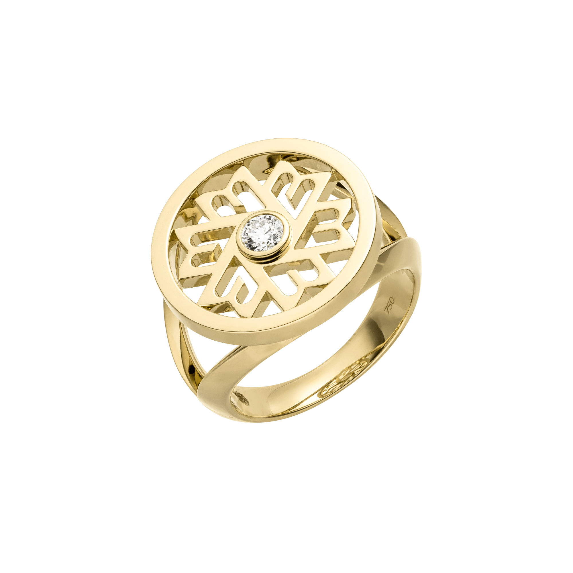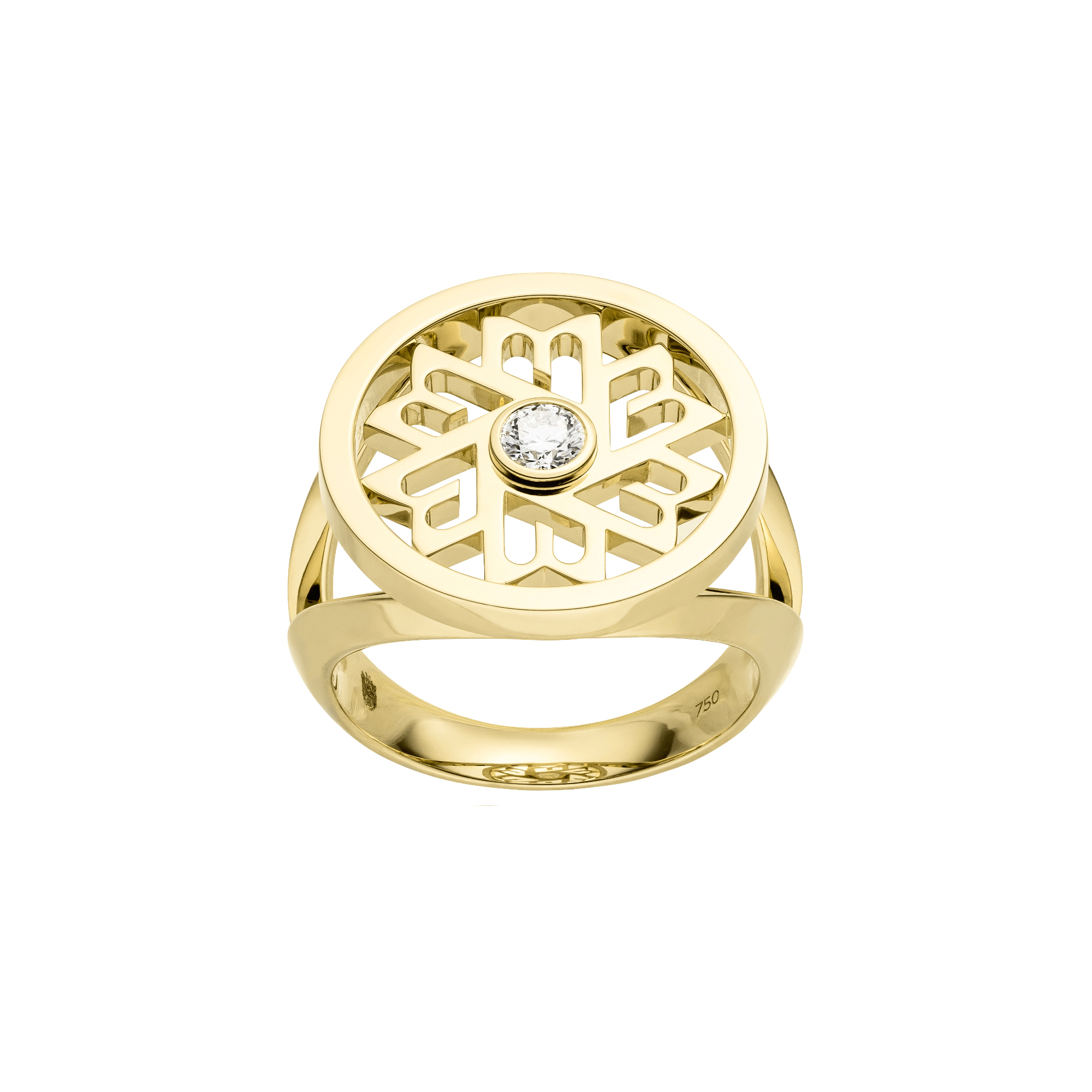 In feinem 750 Gelbgold gefertigt, entfaltet der Ring eine sanfte Wärme, die den Diamanten in seiner Mitte wie ein funkelndes Herzstück erscheinen lässt. Mit einem Gesamtgewicht von 0,21 Karat verleiht der Edelstein dem Schmuckstück einen strahlenden Akzent – subtil, aber bedeutungsvoll. Der offene Aufbau des Rings unterstreicht seine moderne Eleganz und macht ihn zu einem charakterstarken Begleiter für alle, die Werte wie Beständigkeit, Qualität und leise Exzellenz schätzen.