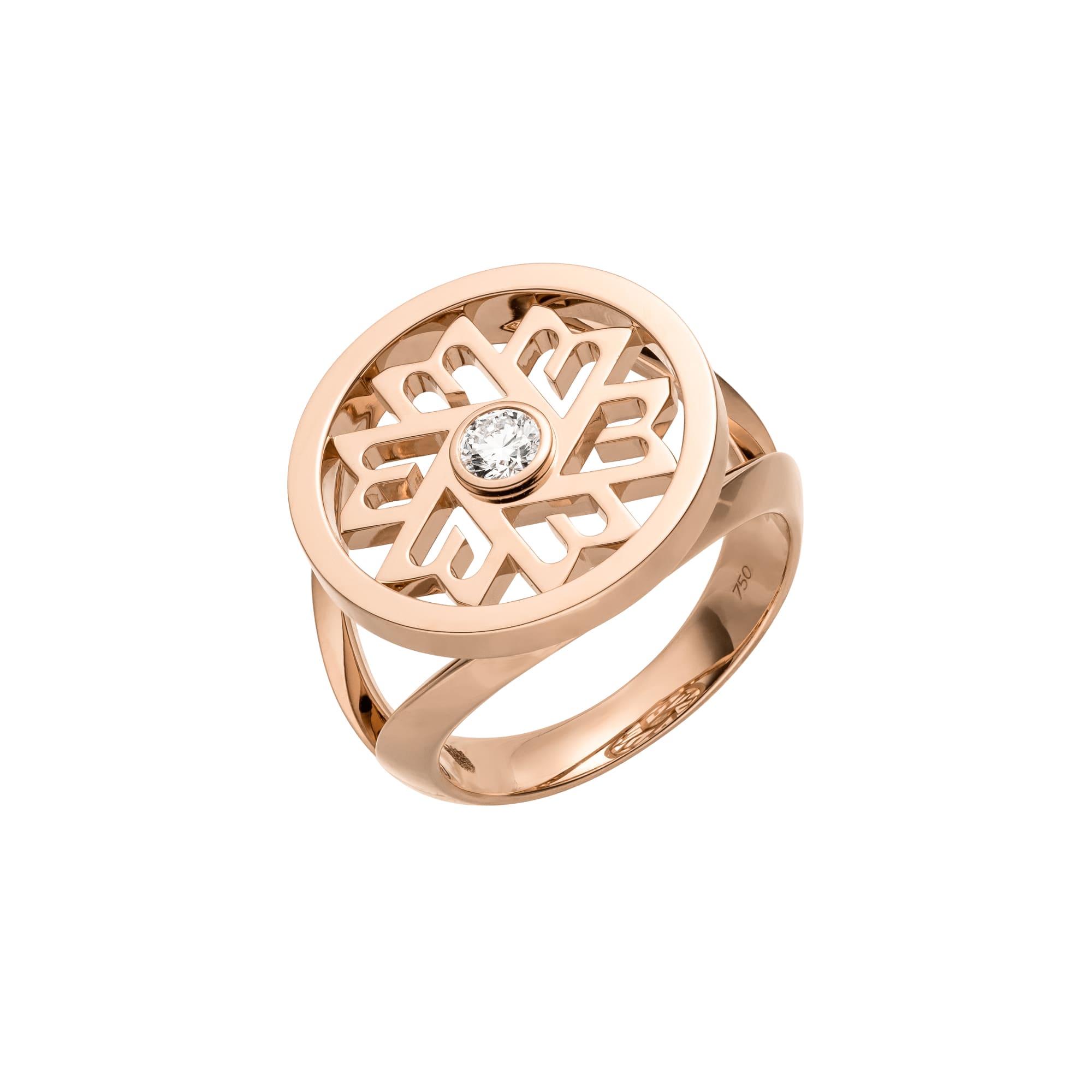 In feinem 750er Roségold gefertigt, entfaltet der Ring eine sanfte Wärme, die den Diamanten in seiner Mitte wie ein funkelndes Herzstück erscheinen lässt. Mit einem Gesamtgewicht von 0,21 Karat verleiht der Edelstein dem Schmuckstück einen strahlenden Akzent – subtil, aber bedeutungsvoll. Der offene Aufbau des Rings unterstreicht seine moderne Eleganz und macht ihn zu einem charakterstarken Begleiter für alle, die Werte wie Beständigkeit, Qualität und leise Exzellenz schätzen.