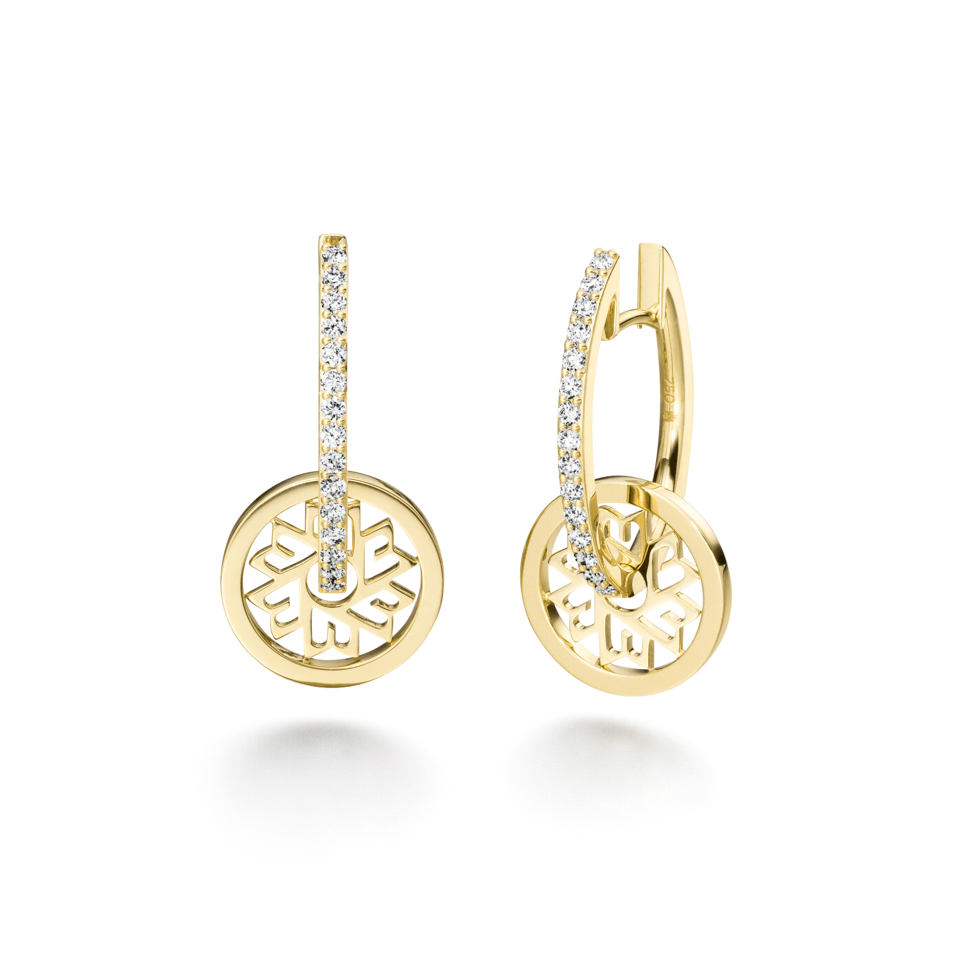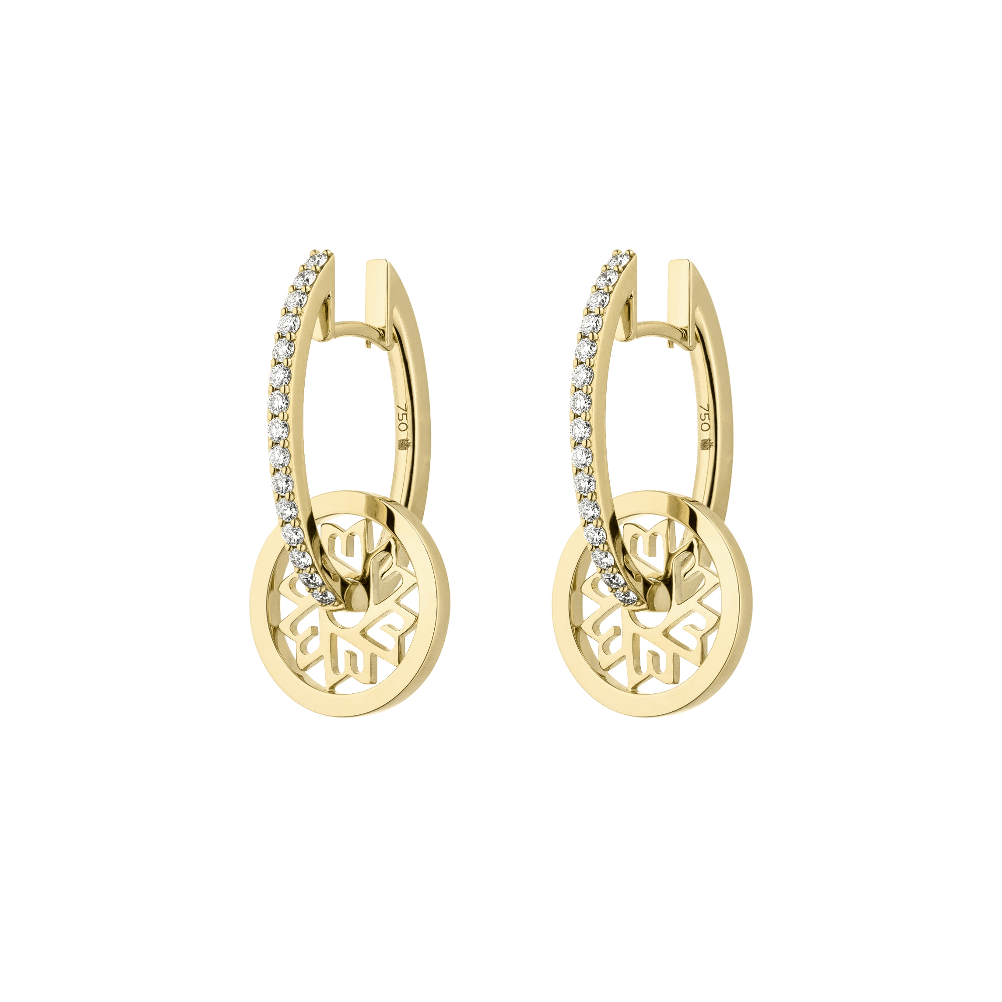 Gefertigt im hauseigenen Mühlbacher Atelier aus edlem 750er Gelbgold, verbinden diese Ohrstecker technische Raffinesse mit femininer Eleganz. Insgesamt 40 fein gefasste Diamanten mit einem Gesamtgewicht von 0,41 Karat verleihen dem Schmuckstück ein brillantes Leuchten – sanft, aber präsent. Ein liebevolles Detail verbirgt sich auf der Rückseite des linken Ohrsteckers: eine zarte Herzgravur, die das Schmuckstück zu einem ganz persönlichen Begleiter macht.