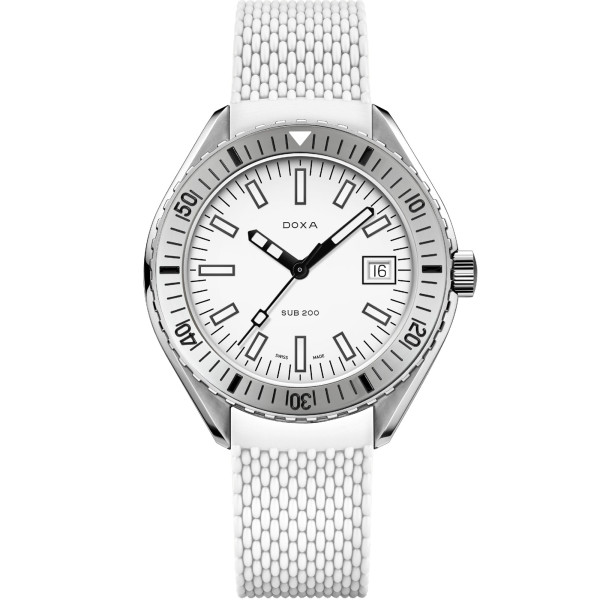 Ref. 796.15.011.23 - Diese auf der Baselworld 2019 eingeführten 3-Zeiger-Taucheruhr hat ein Gehäuse aus hochwertigem 316L-Edelstahl mit einem Durchmesser von 42 mm. Das kratzfeste, entspiegelte Saphirglas der SUB 200 besticht durch die markante Wölbung des damals verwendeten Plexiglas. Das Modell ist bis zu einer Tiefe von 200 Metern (20 bar) wasserdicht und verfügt über eine einseitig drehbare Lünette. Sämtliche Elemente, die Tauchinformationen liefern, ausser der Lünette, sind mit einer Super-LumiNova®-Leuchtbeschichtung versehen.