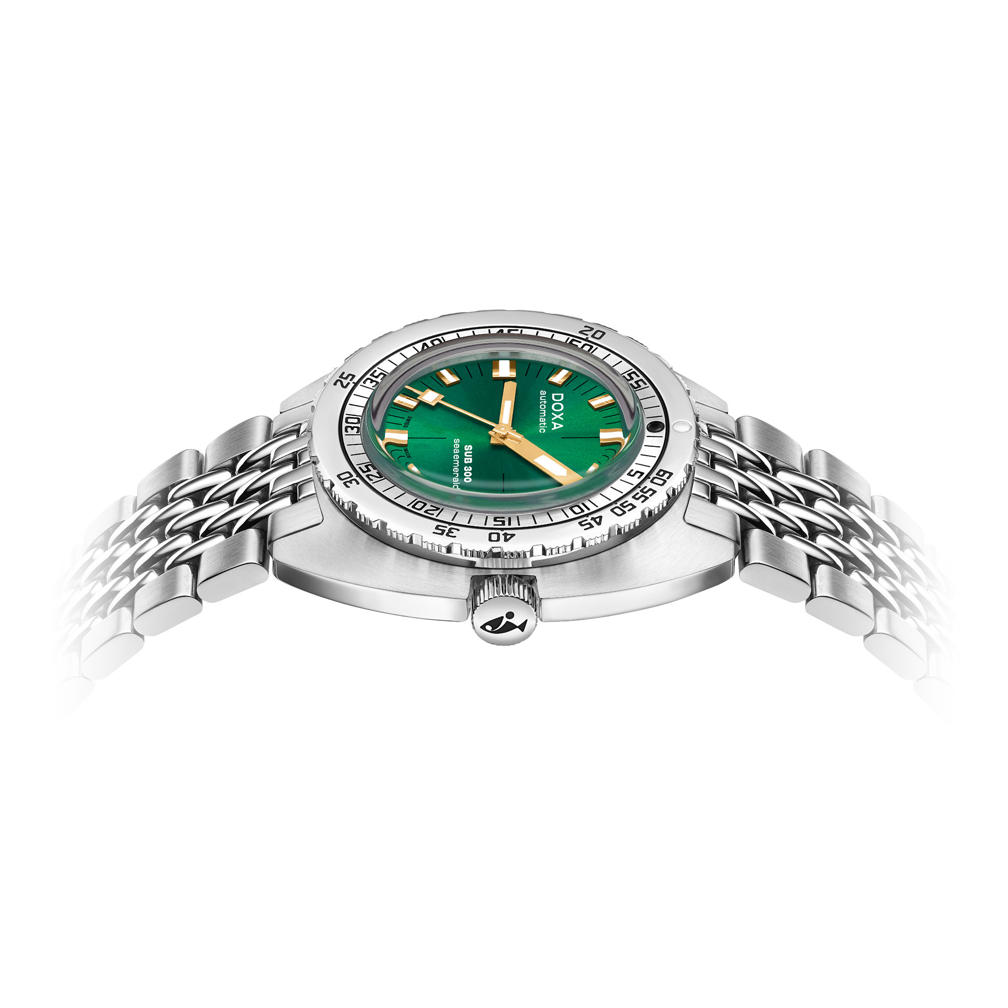 Heute ist die 42,5 mm grosse SUB 300 aus Edelstahl 316L mit einem Dreizeiger-Automatikwerk mit COSC-Zertifizierung als Certified Chronometer ausgerüstet, das Präzision, Robustheit und Zuverlässigkeit garantiert und eine Gangreserve von 38 Stunden sicherstellt. Bei 3h befindet sich ein Datumsfenster. Die Uhr ist mit der berühmten, patentierten einseitig drehbaren Lünette mit zweifacher Skala für die Tauchdauer in Minuten und die Tauchtiefe in Meter zum Auftauchen ohne Dekompressionsstopps ausgerüstet, sowie einer verschraubten Krone. Ihre Wasserdichtigkeit ist bis 300 Meter garantiert, was rund 984 Fuss entspricht.