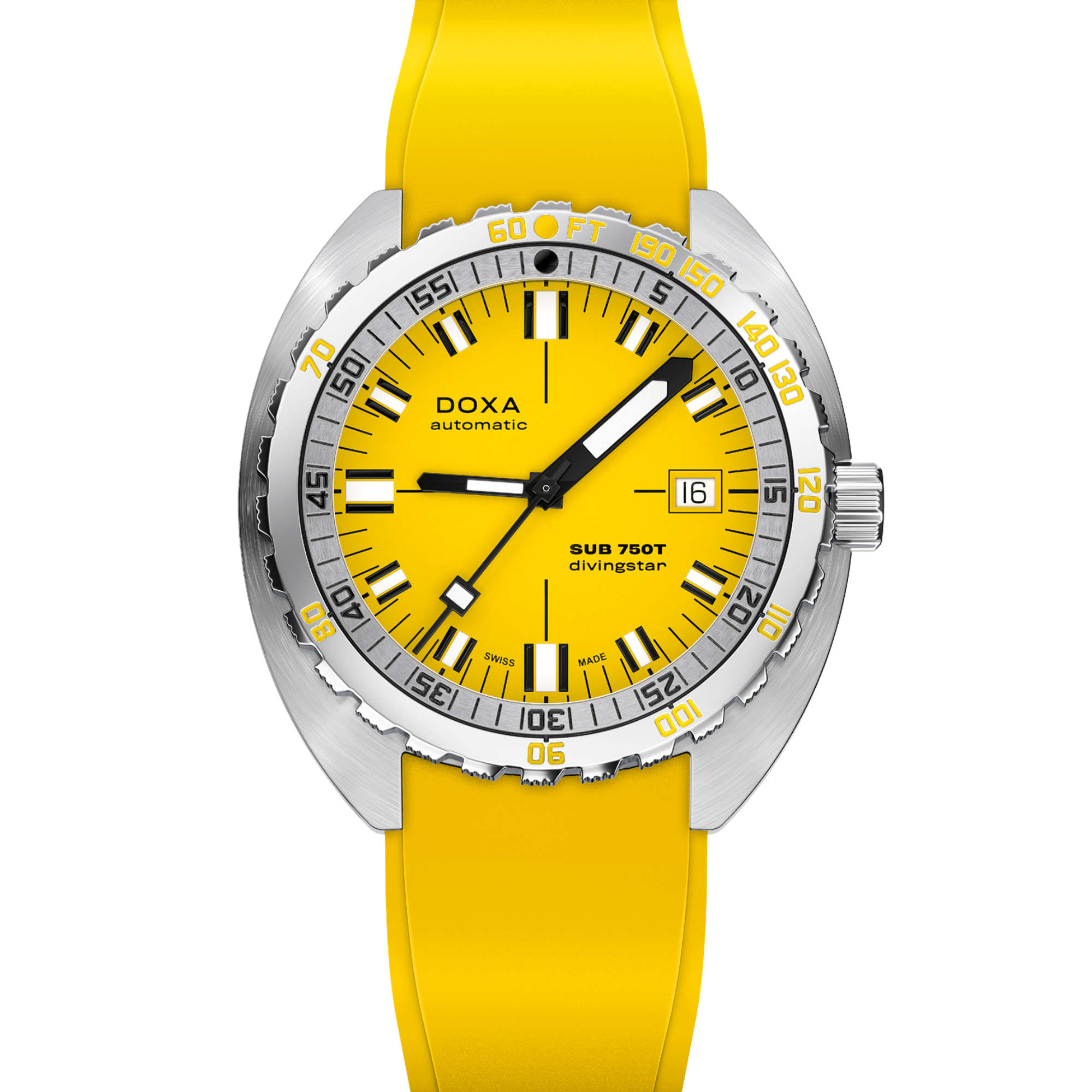 Heute bringt DOXA diese Ikone mit einem vollständig überarbeiteten Design in die Gegenwart. Die neue SUB 750T bewahrt die DNA des Originals mit ihrer markanten Präsenz, kompromisslosen Verarbeitung und robusten Zuverlässigkeit, präsentiert sich jedoch mit einer schlankeren und moderneren Silhouette. Das neu gestaltete Gehäuse bleibt mit 45.00 x 47.00 mm eindrucksvoll, wurde jedoch auf eine Höhe von nur 11,95 mm reduziert, was sie leichter, bequemer und zeitgemäßer macht.