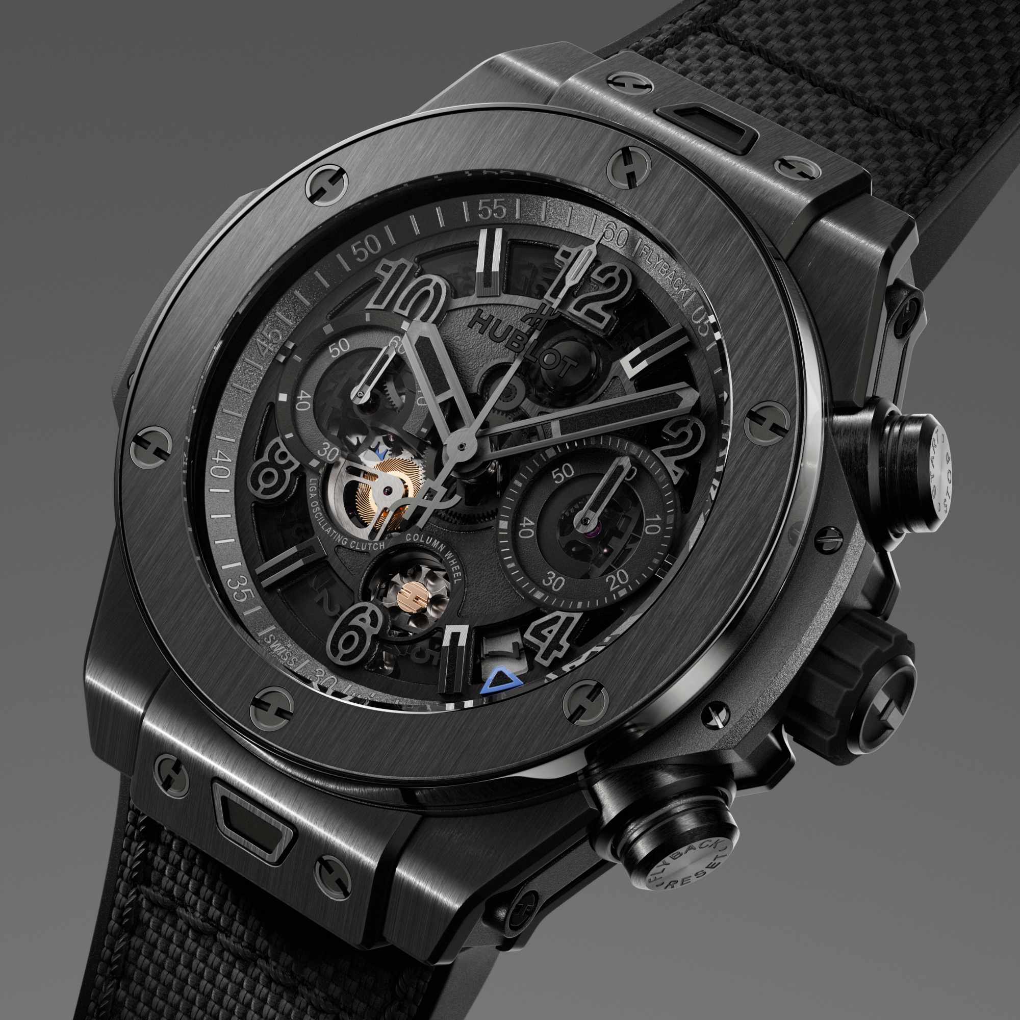 Die Big Bang Reloaded bleibt ihrem ikonischen Design treu und präsentiert sich gleichzeitig mit einem markanteren, sportlicheren Charakter. Das 44-mm-Gehäuse besticht durch eine ausdrucksstärkere Architektur mit einer zweiteiligen Lünette, die prägnantere Kontraste schafft und ein dynamisches Zusammenspiel von Materialien und Veredelungen ermöglicht. Das Zifferblatt mit mehreren Ebenen spielt mit Texturen und Oberflächen, was ihm zusätzliche Tiefe und einen technischen Touch verleiht. Der Chronograph wird zum markanten Highlight, mit einem farbigen Ring am Drücker bei 4 Uhr, einem neu gestalteten Minutenzähler bei 3 Uhr, dem Schriftzug „Flyback“ sowie dem zwischen 4 und 5 Uhr neu positionierten Datumsfenster.