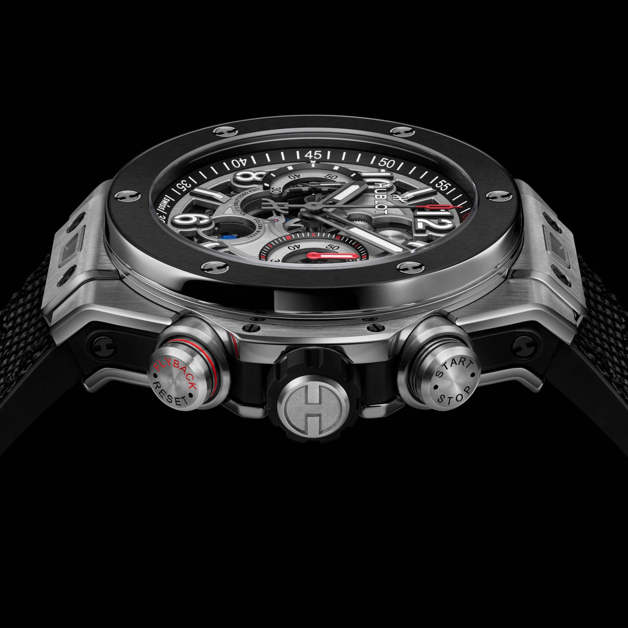 Poliertes Titan mit oberer Lünette aus satinierter schwarzer Keramik