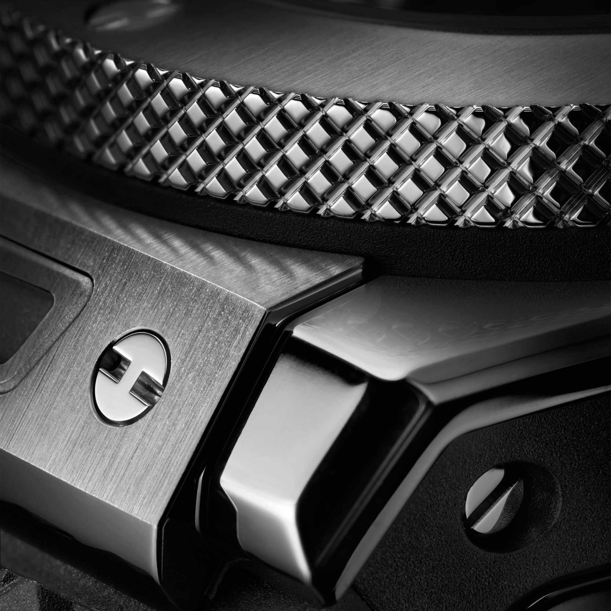 Lünette: satiniertes und poliertes Titan mit strukturiertem Muster an der Seite und 6 h - förmigen Schrauben aus Titan