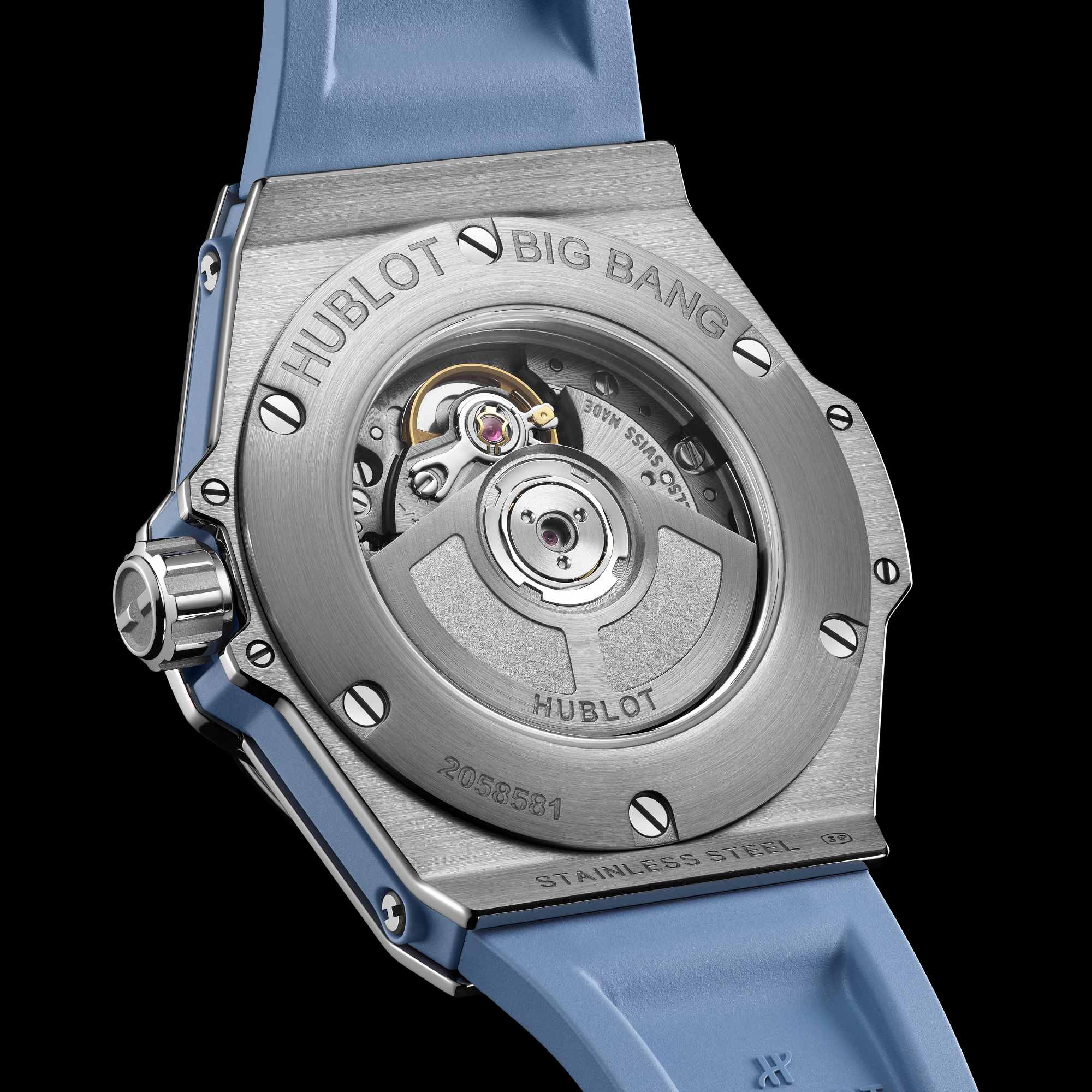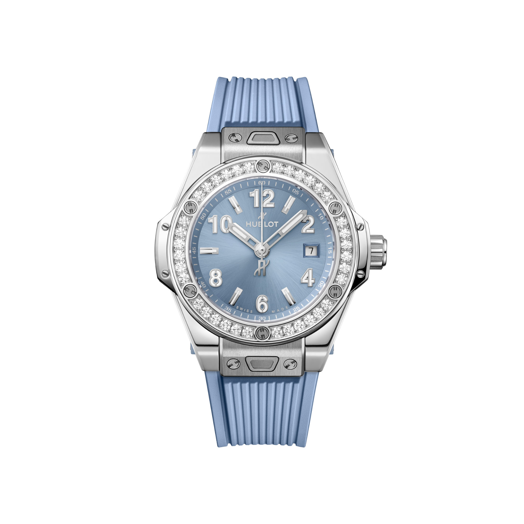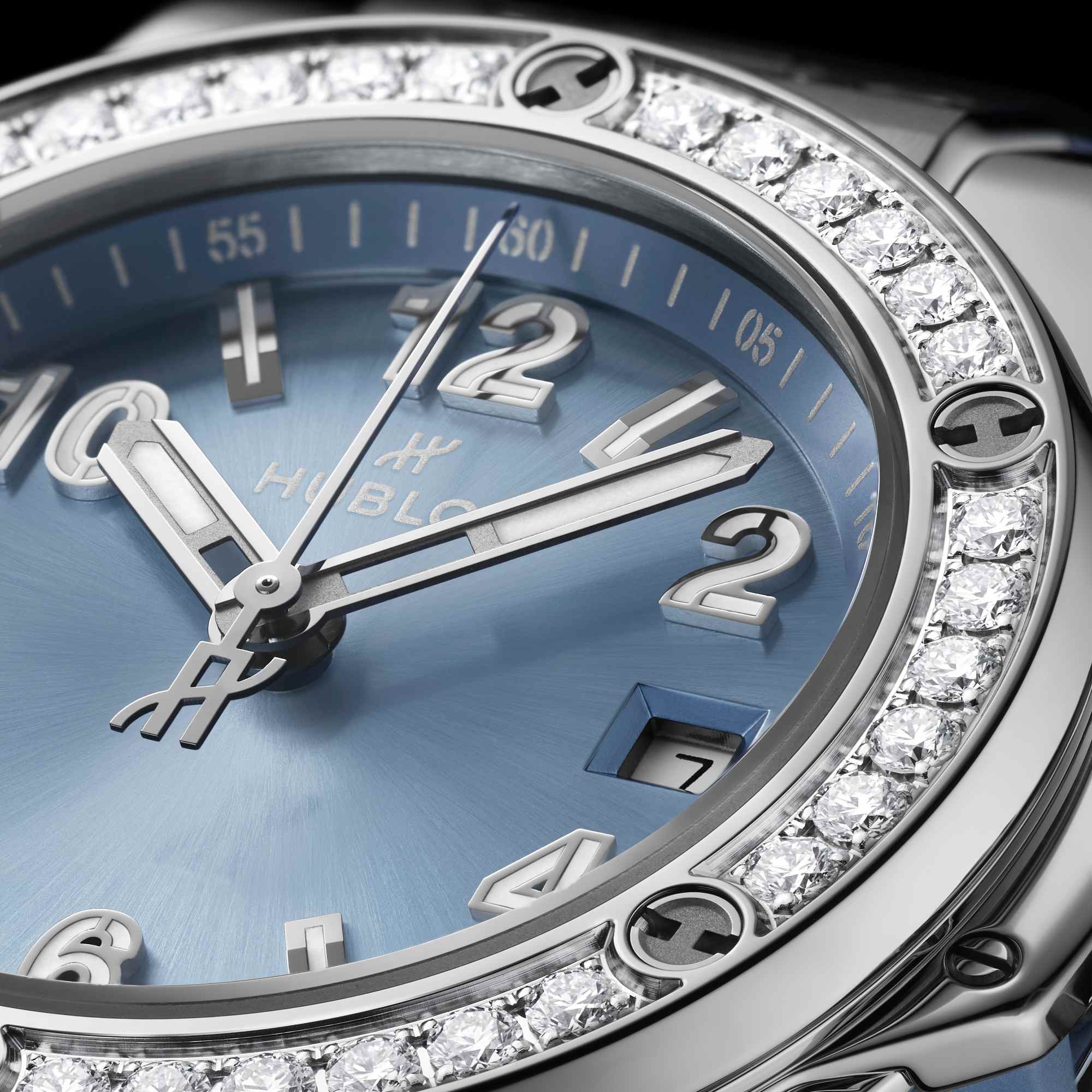 Lünette: polierter Edelstahl besetzt mit 36 Diamanten ca. 0.76 ct. und 6 h-förmigen Schrauben aus Titan
