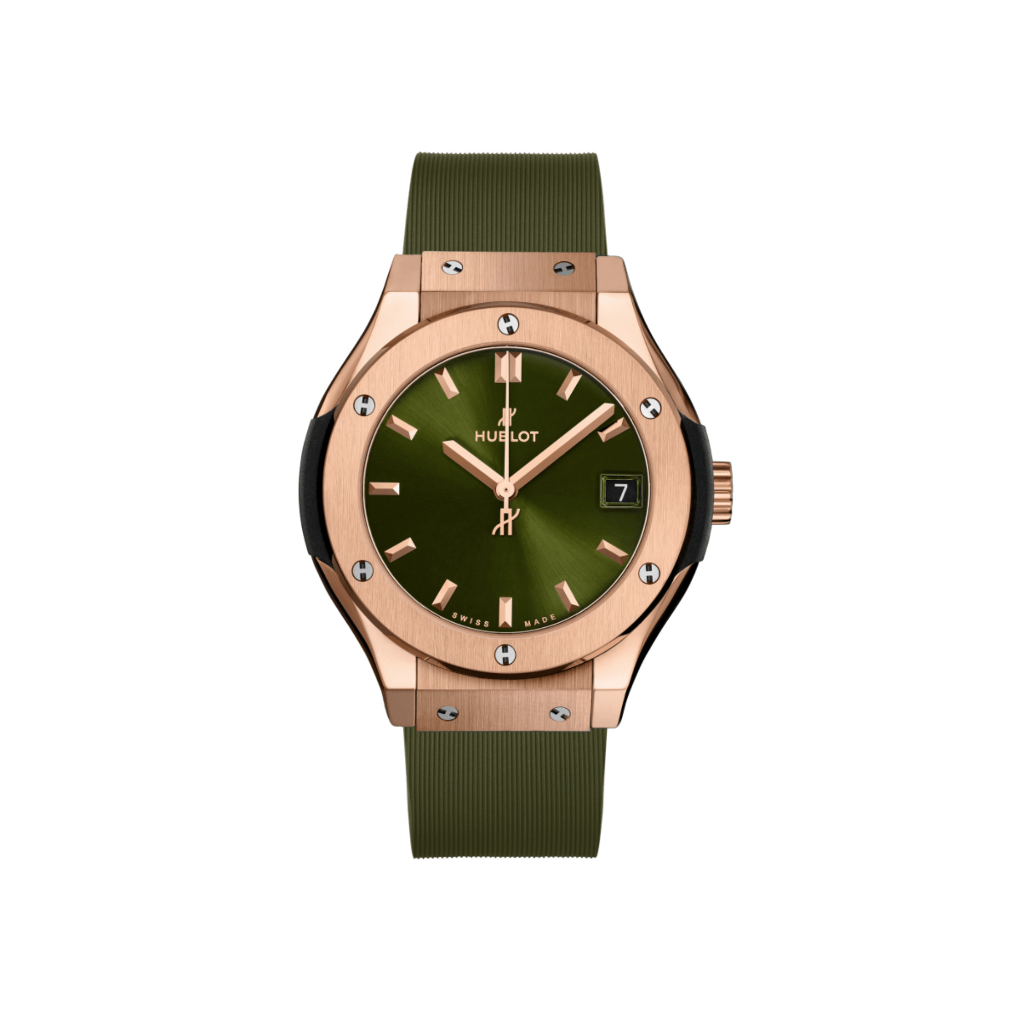 Lünette: Satiniertes und poliertes 18 Karat King Gold mit 6 h-förmigen Schrauben aus Titan
