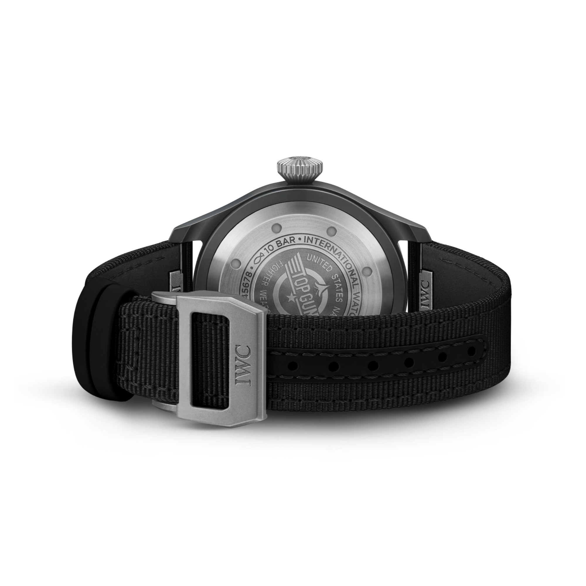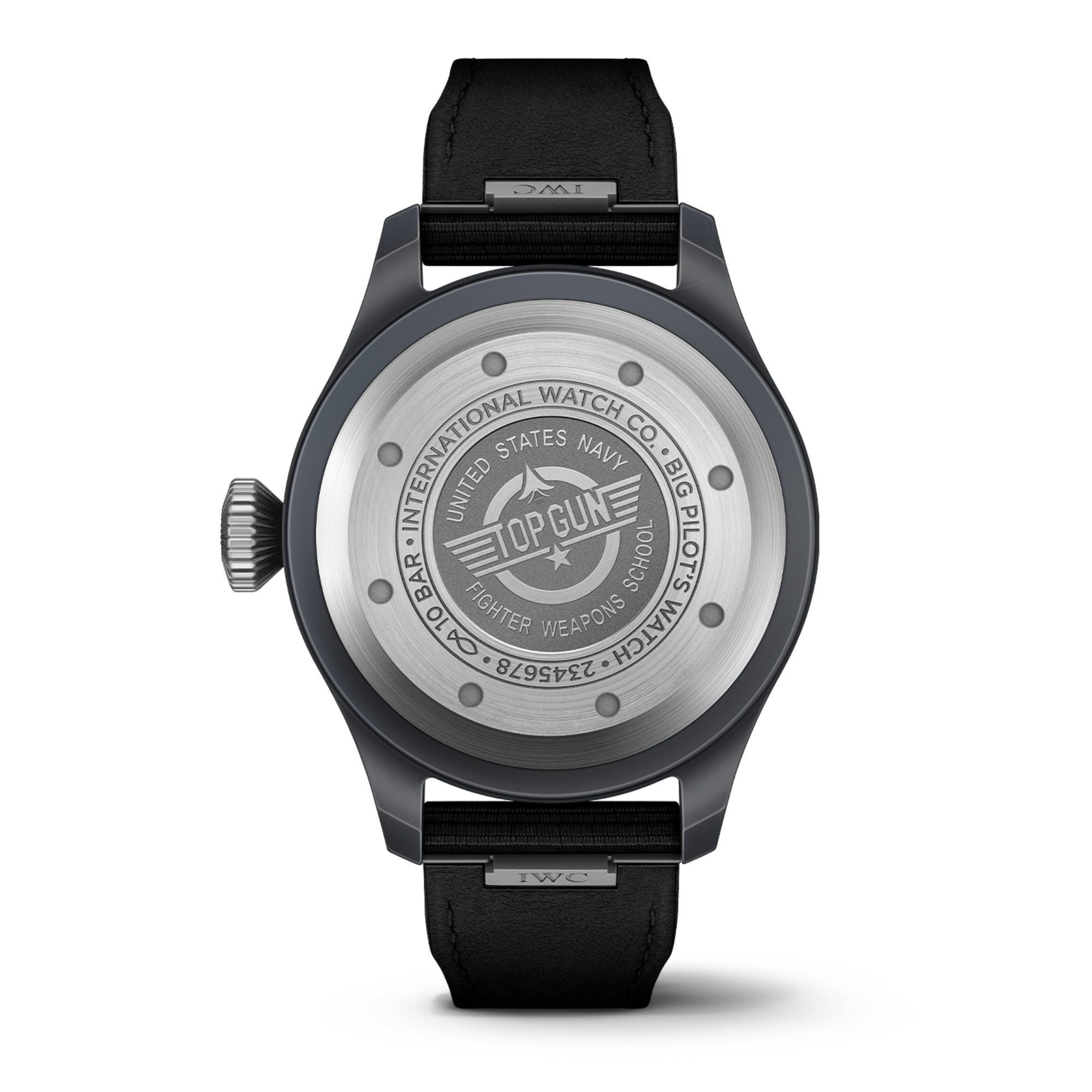 Schwarzes Zifferblatt mit arabischen Ziffern und Indizes