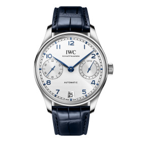 Ref. IW371625 - Seit 1998 bringt die Portugieser Chronograph eine sportlich-elegante Note in die Portugieser-Kollektion von IWC Schaffhausen. Die IWC-typische, vertikale Anordnung der Hilfszifferblätter zeigt die gestoppten Minuten direkt bei 12 Uhr an und platziert die kleine Sekunde bei 6 Uhr. Diese Anordnung verbessert die Ablesbarkeit und hat die Portugieser Chronograph zu einer Design-Ikone gemacht. Ein weiteres Merkmal ist der mit einer Viertelsekundenskala bedruckte Réhaut, der eine präzise Ablesung der Stoppzeit gewährleitet.