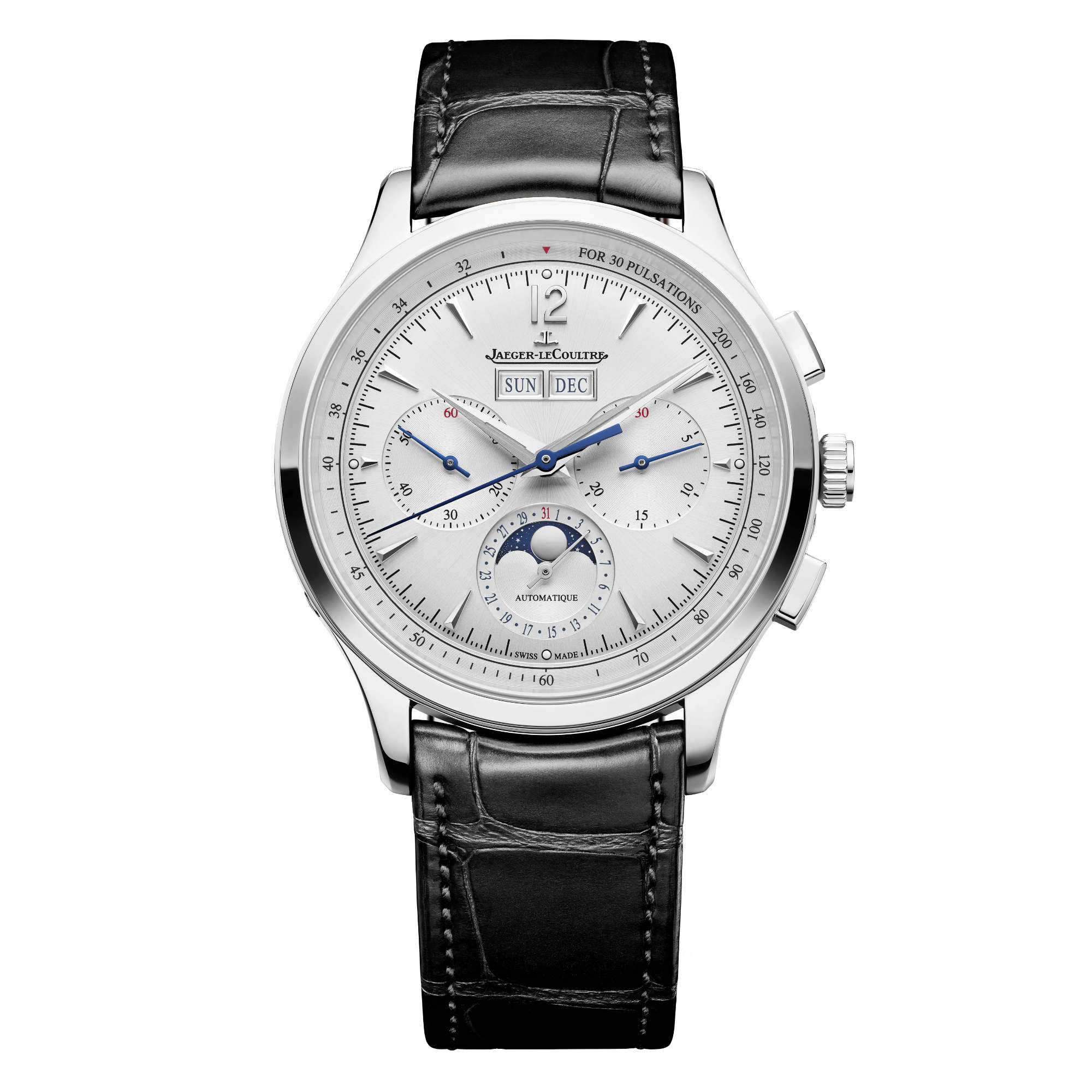 Ref. Q4138431 - Zum allerersten Mal haben die Uhrmacher der Manufaktur aus dem Vallée de Joux im Rahmen der Master Control Kollektion den Chronographen mit einem Dreifachkalender kombiniert. Die Master Control Kollektion setzt Maßstäbe, indem sie charakterstarkes Design und ein automatisches Uhrwerk kombiniert, das in der Manufaktur gefertigt wird, und beeindruckt Liebhaber eleganter Uhrenmodelle seit ihrer Lancierung im Jahr 1992. Dieser offenbare Erfolg inspirierte Jaeger-LeCoultre, die ästhetischen und mechanischen Codes dieser Kollektion neu zu interpretieren und zugleich die grundlegenden Funktionen beizubehalten. Ein rundes Gehäuse. Elegante Attribute. Hochwertiges Finish. Im Rahmen dieses ausgeklügelten Ensembles verfügt die Master Control Chronograph Calendar in Edelstahl über einen Chronographen und einen vollständigen Kalender.