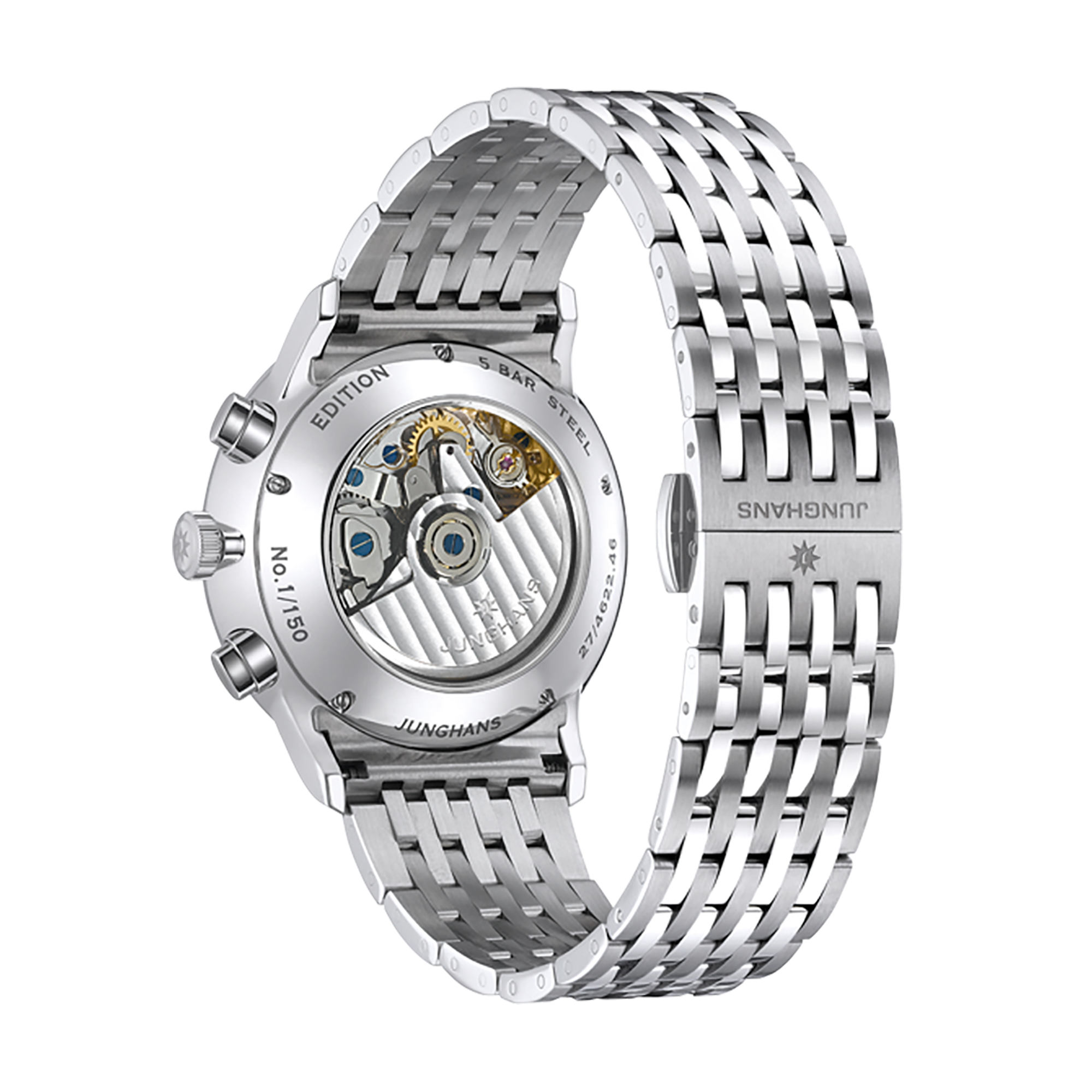 Ref. 27/4622.46 - Junghans Meister Uhren sind seit fast einem Jahrhundert verlässliche Zeitgeber.Basierend auf historischen Vorbildern, die ab den 1930er Jahren entstanden sind, sind sie heute zeitgemäß interpretiert. Auf 150 Uhren limitiert ist die sportlich-moderne Edition 2026 mit Metallband und petrolfarbenem Zifferblatt. Die für die Meister Uhren typischen, schalenförmig eingelassenen Hilfszifferblätter sind matt schwarz.