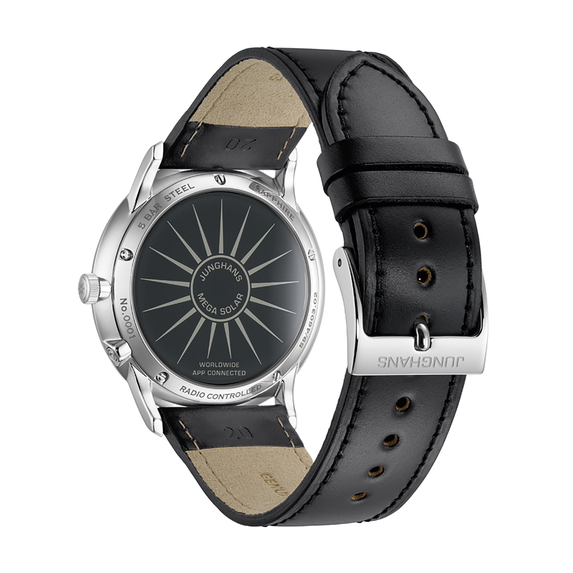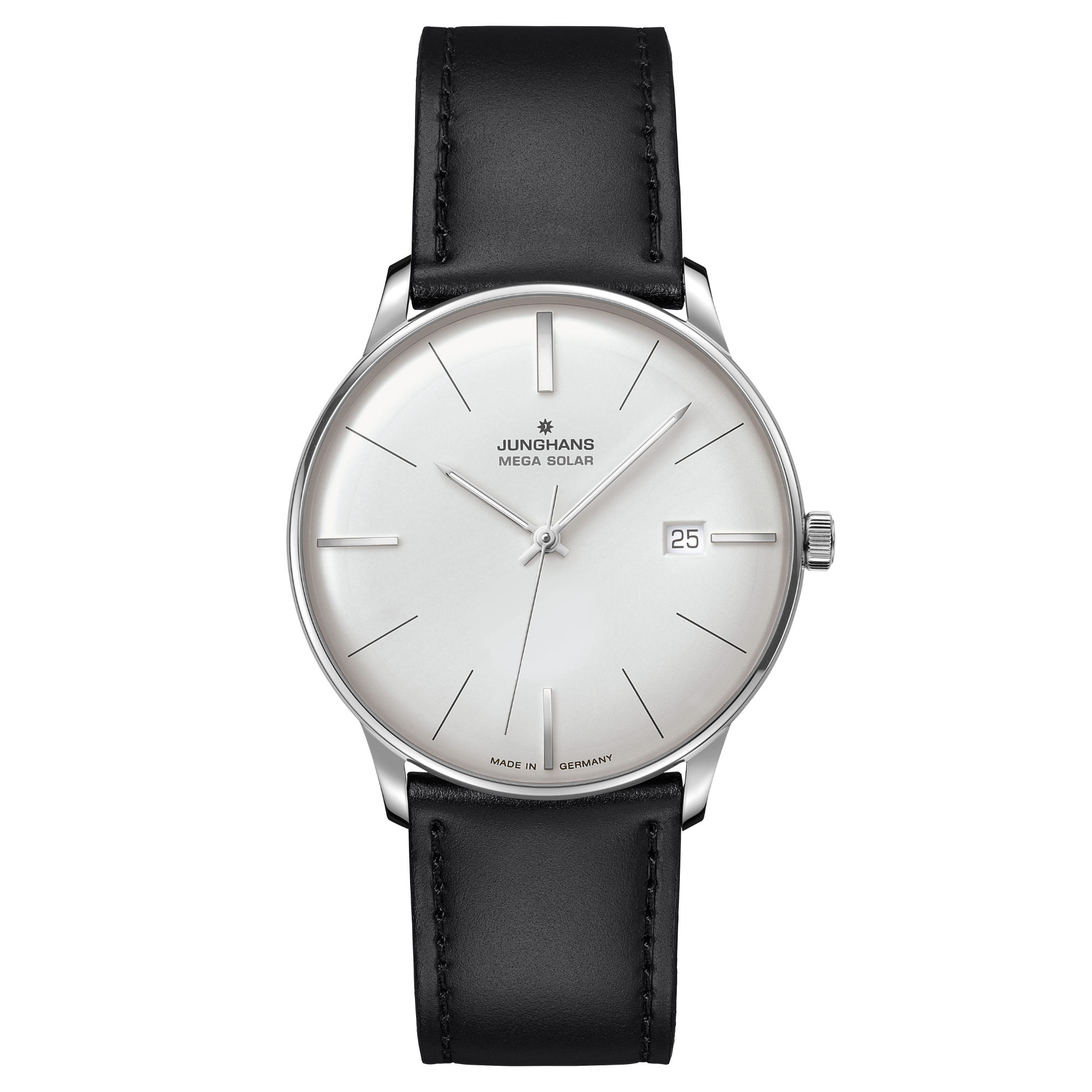 Ref. 59/4603.02 - Diese Uhr vereint zwei Kernkompetenzen von Junghans: Schönste Uhrengestaltung und die hauseigene Funktechnologie. Außerhalb von Funksignalen lässt sich die Uhr einfach über die Krone oder mit der Junghans App einstellen. Und nachhaltig ist die Meister MEGA Solar auch – dank Solarantrieb.