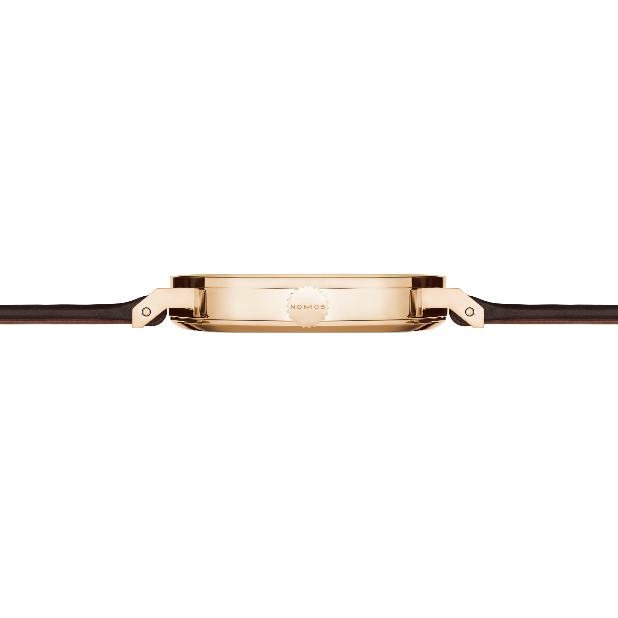 Braunes rembordiertes Lederarmband (Horween Genuine Shell Cordovan) mit NOMOS-Flügelschließe aus Roségold