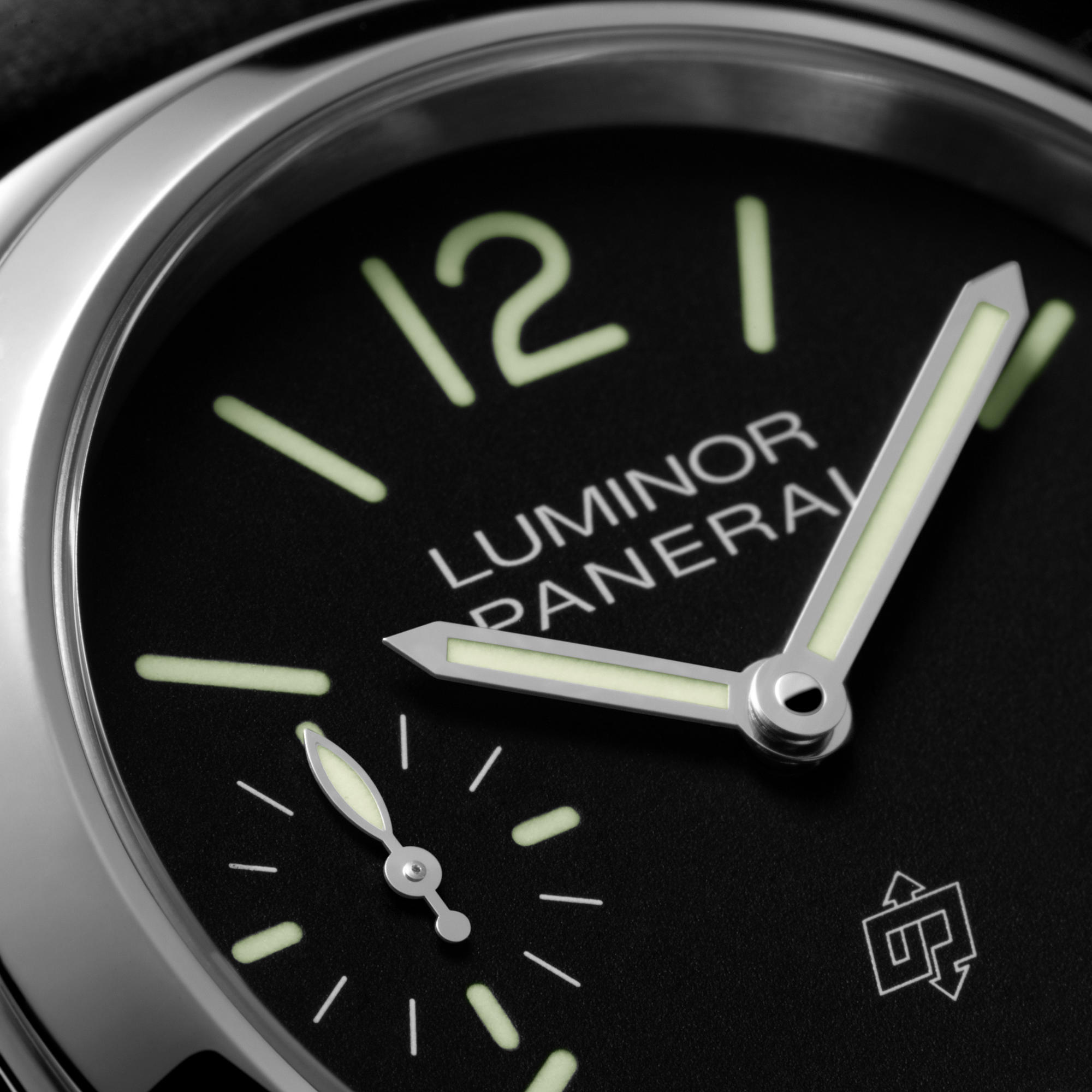 Schwarz mit fluoreszierenden arabischen Ziffern und Stundenmarkierungen