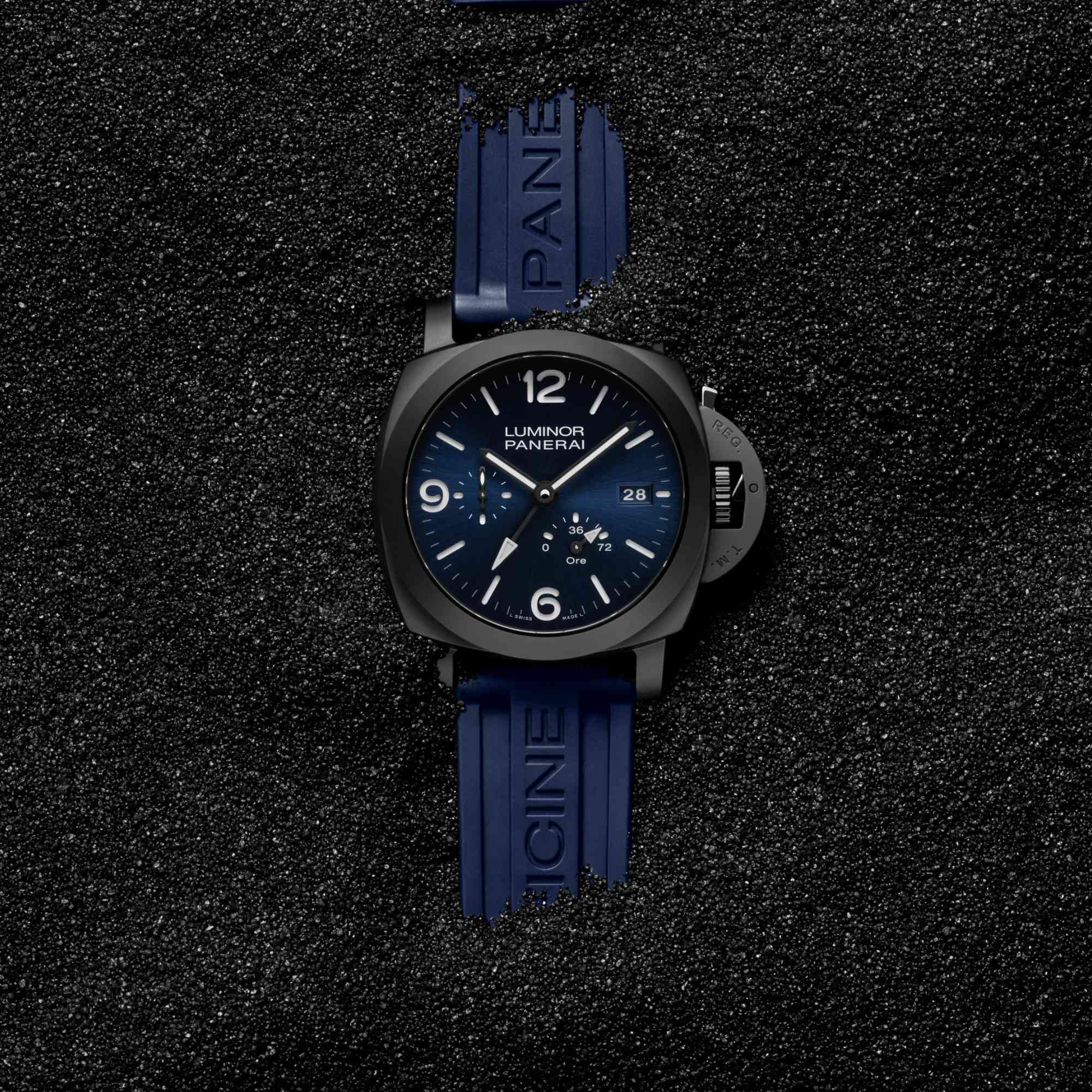 Dunkelblaues Alligatorlederarmband mit Dornschließe aus Titan mit DLC-Beschichtung, Schnellentriegelungssystem
