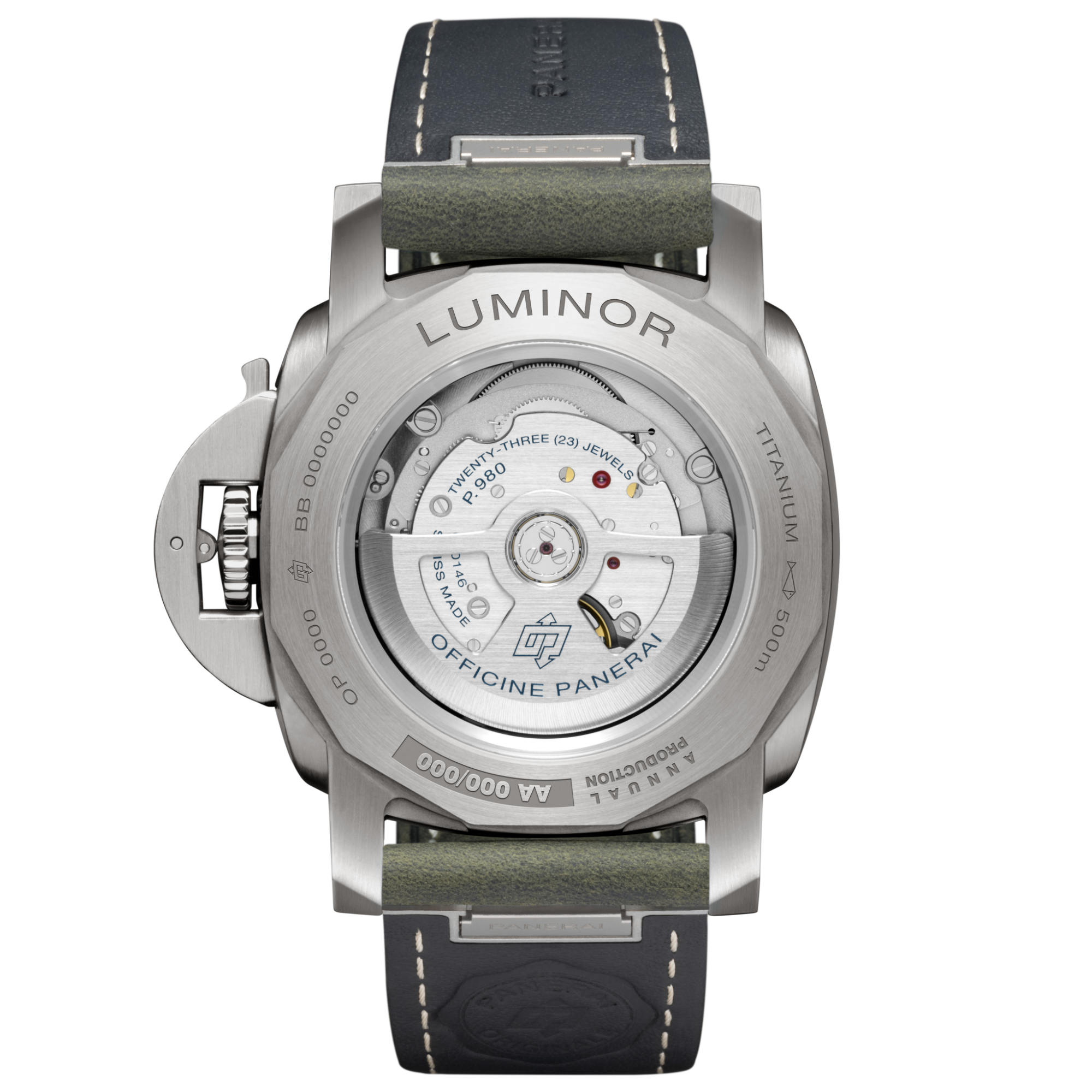 Gehäuseboden: verschraubtes, transparentes Saphirglas und Titan