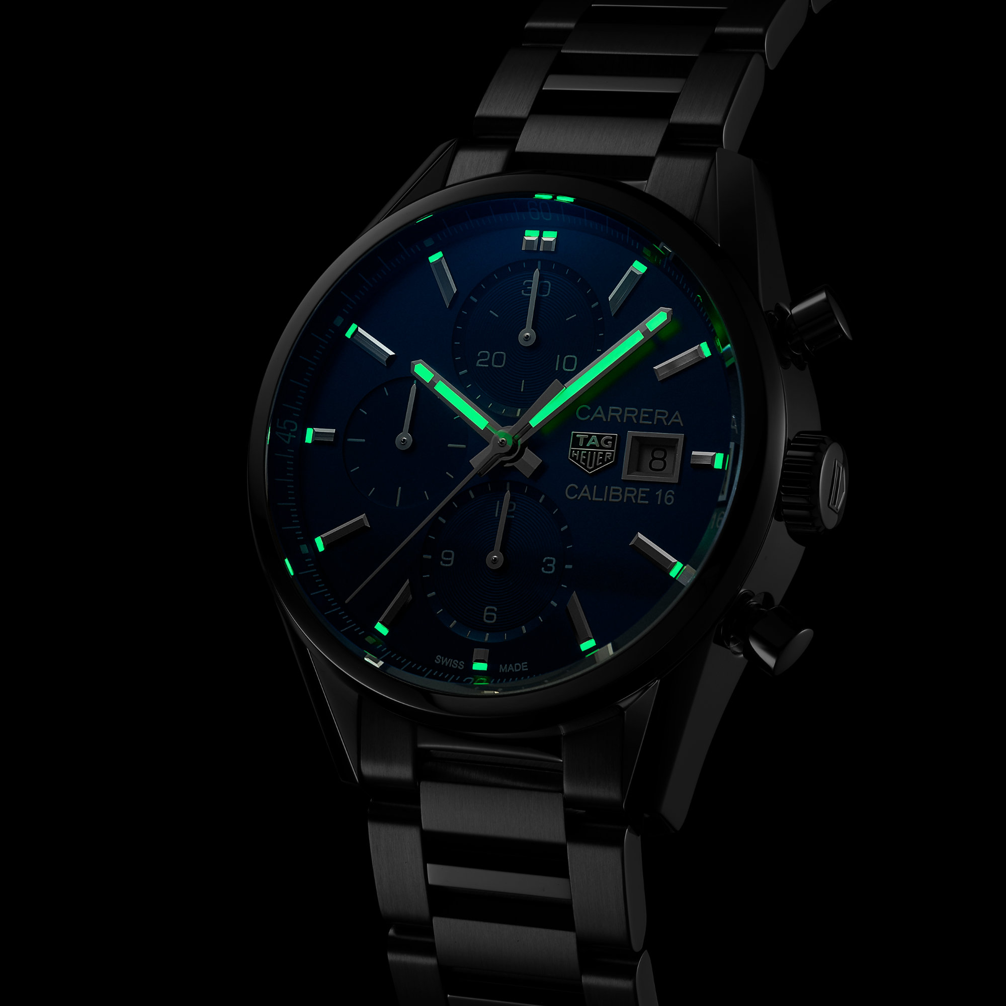 Ref. CBK2112.BA0715 - Ein moderner Klassiker. Einer der meistverkauften Chronographen der Carrera-Kollektion, mit blauem Zifferblatt aufgewertet durch Sonnenstrahleneffekt, markanten blauen Totalisatoren und einem 3-reihigen Armband aus rhodiniertem Edelstahl.