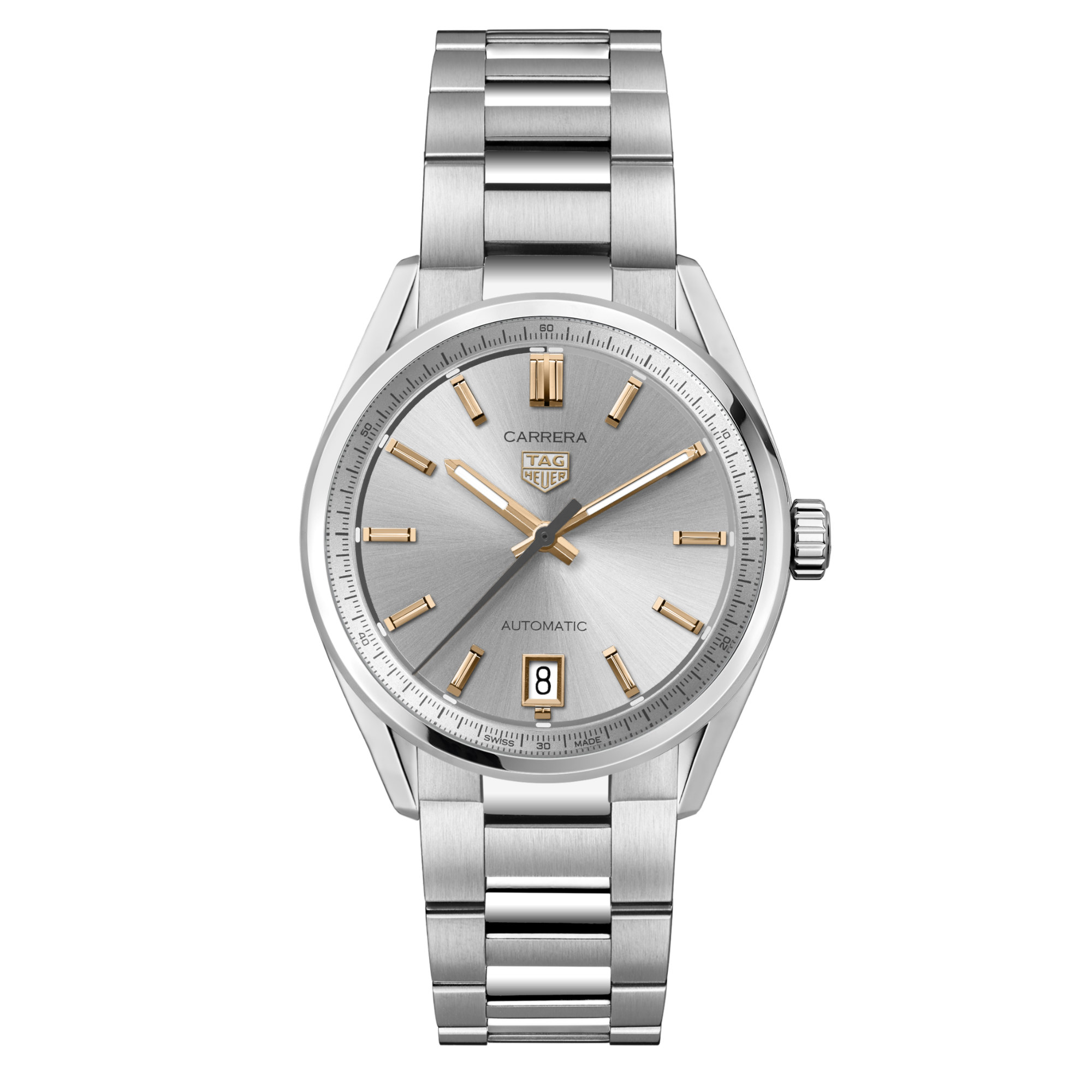 Das 36-mm-Gehäuse aus Edelstahl ist ergonomischer denn je und birgt das neue automatische Calibre 7 mit einer Gangreserve von 56 Stunden. Raffiniert und entschlossen.