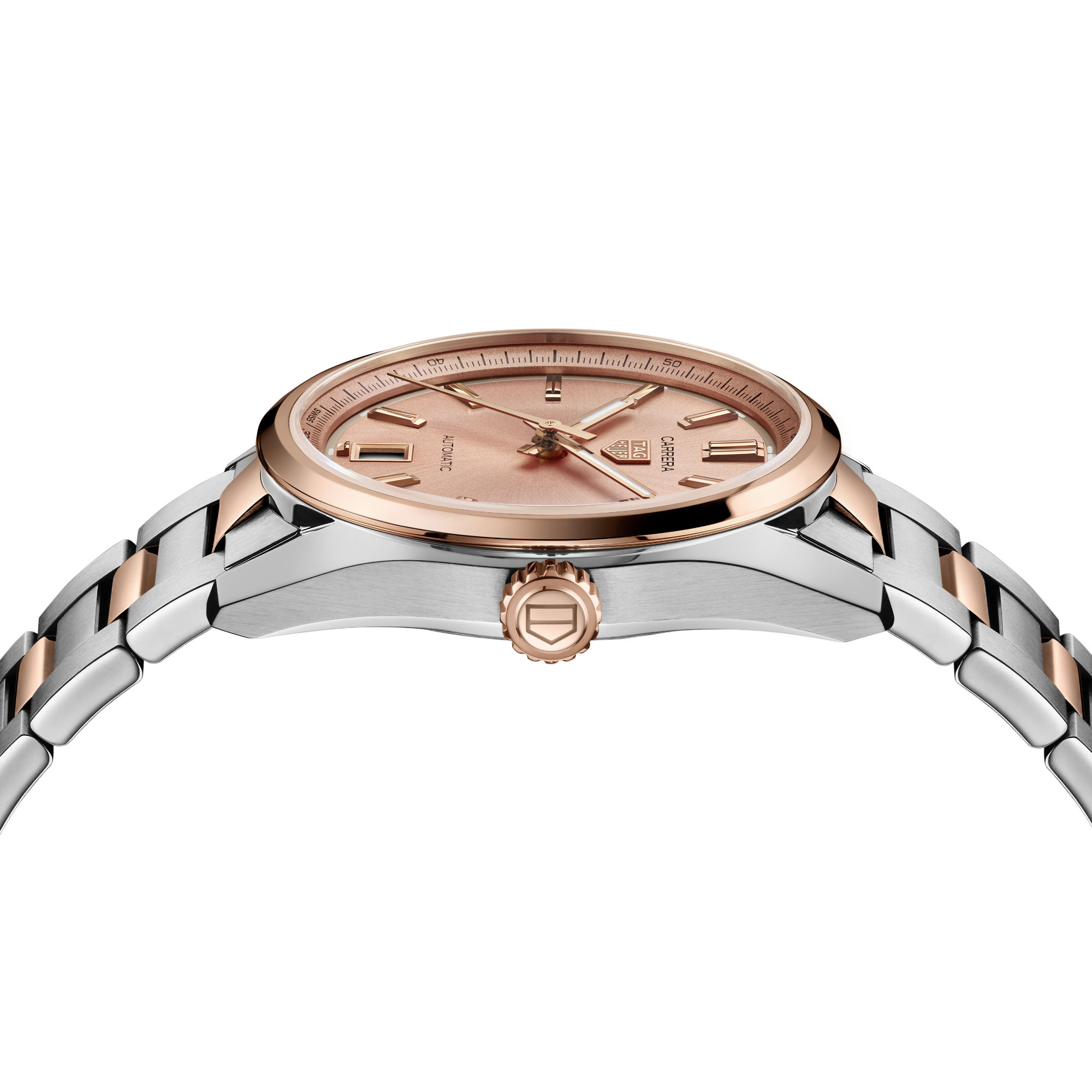 Ref. WBN2350.BD0000 - Diese luxuriöse 36 mm große TAG Heuer Carrera Date verkörpert Raffinesse. Sie verbindet die subtile Eleganz der kupferfarbenen Töne ihres Zifferblatts mit Schneckenschliff mit einer Silhouette, die an das geschichtsträchtige Erbe von Geschwindigkeit und Luxus der Kollektion erinnert.