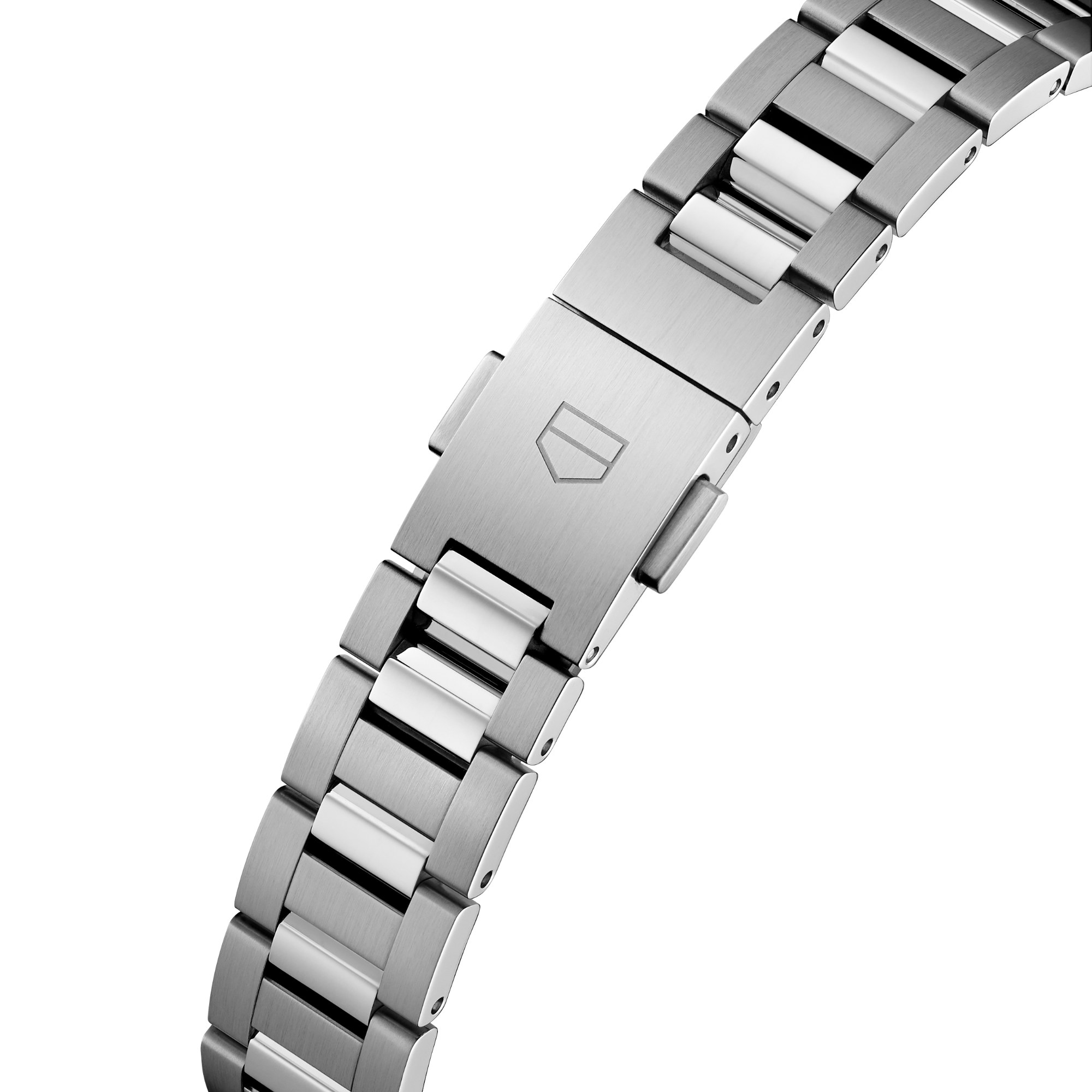 Weißes Perlmutt und 11 diamantbesetzte (0,088 ct) Stundenmarkierungen und rhodinierte Zeiger mit SuperLumiNova®-Details