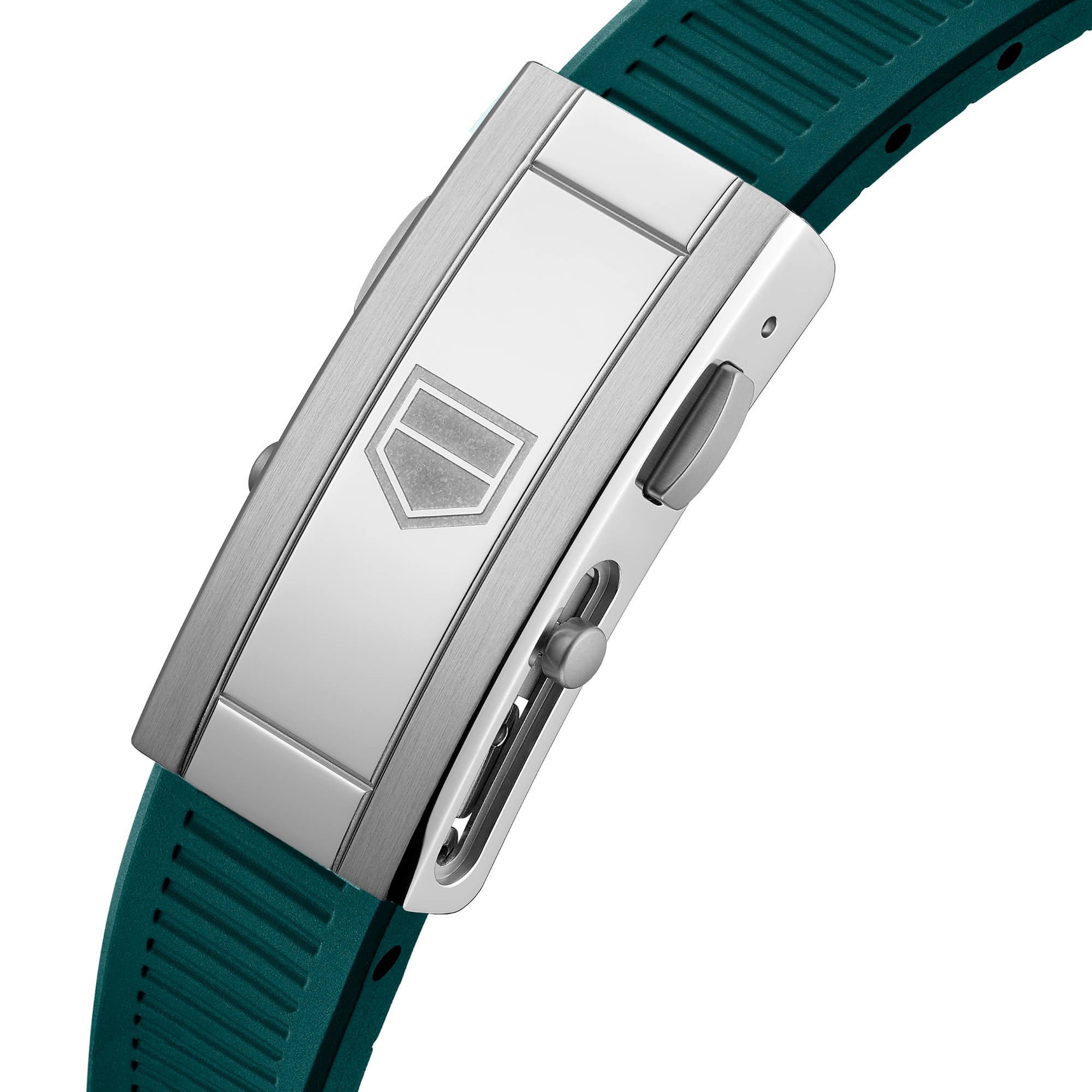 Blaues Kautschukarmband mit Faltschließe mit Sicherheitsdrückern