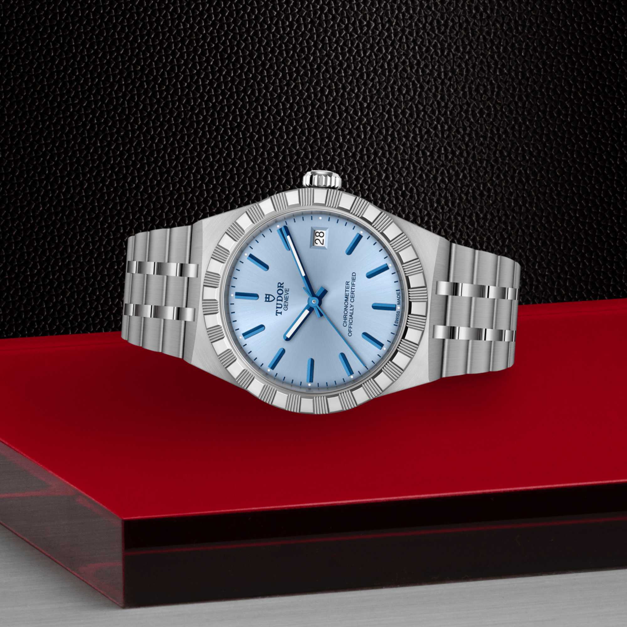 Ref. M2836C1A0-0106 - Mit ihrem integrierten Metallarmband, das nahtlos in das Gehäuse übergeht, zeichnet sich die TUDOR Royal durch ein fließendes und stilsicheres Design aus. Charakterisiert durch ihre drei breiten satinierten Bandelemente, zwischen denen zwei schmalere polierte Elemente positioniert sind, und ihre „T-fit“-Schließe, betont die glatte Beschaffenheit ihrer Oberflächen die große Aufmerksamkeit, die TUDOR dem Tragekomfort schenkt. Erhältlich in Edelstahl oder mit abwechselnden Elementen in Edelstahl und Gelbgold, sprechen die Modelle dieser Linie mit ihrer fein bearbeiteten Oberfläche jeden Geschmack an.