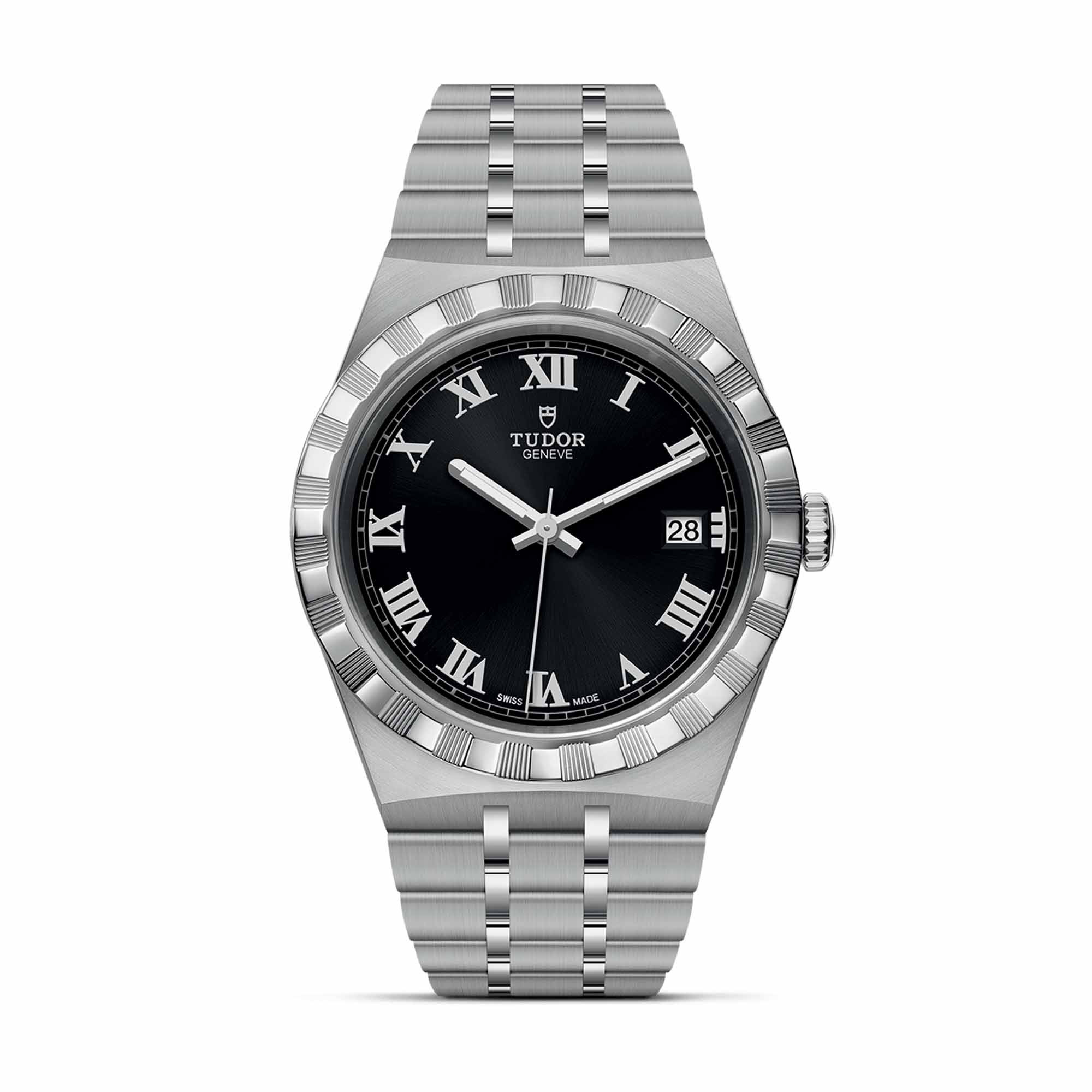 Ref. M28500-0003 - Der Name „Royal“ wurde von TUDOR erstmals in den 1950er-Jahren verwendet, um die herausragende Qualität seiner Armbanduhren hervorzuheben. Die TUDOR Royal Linie ist Teil dieses Erbes, da sie automatische sportlich-elegante Uhren mit integrierten Armbändern umfasst, die sowohl erschwinglich als auch kompromisslos sind. Die Royal ist in Edelstahl oder in Gold und Edelstahl sowie in vier Größen mit neun verschiedenen Zifferblättern erhältlich.