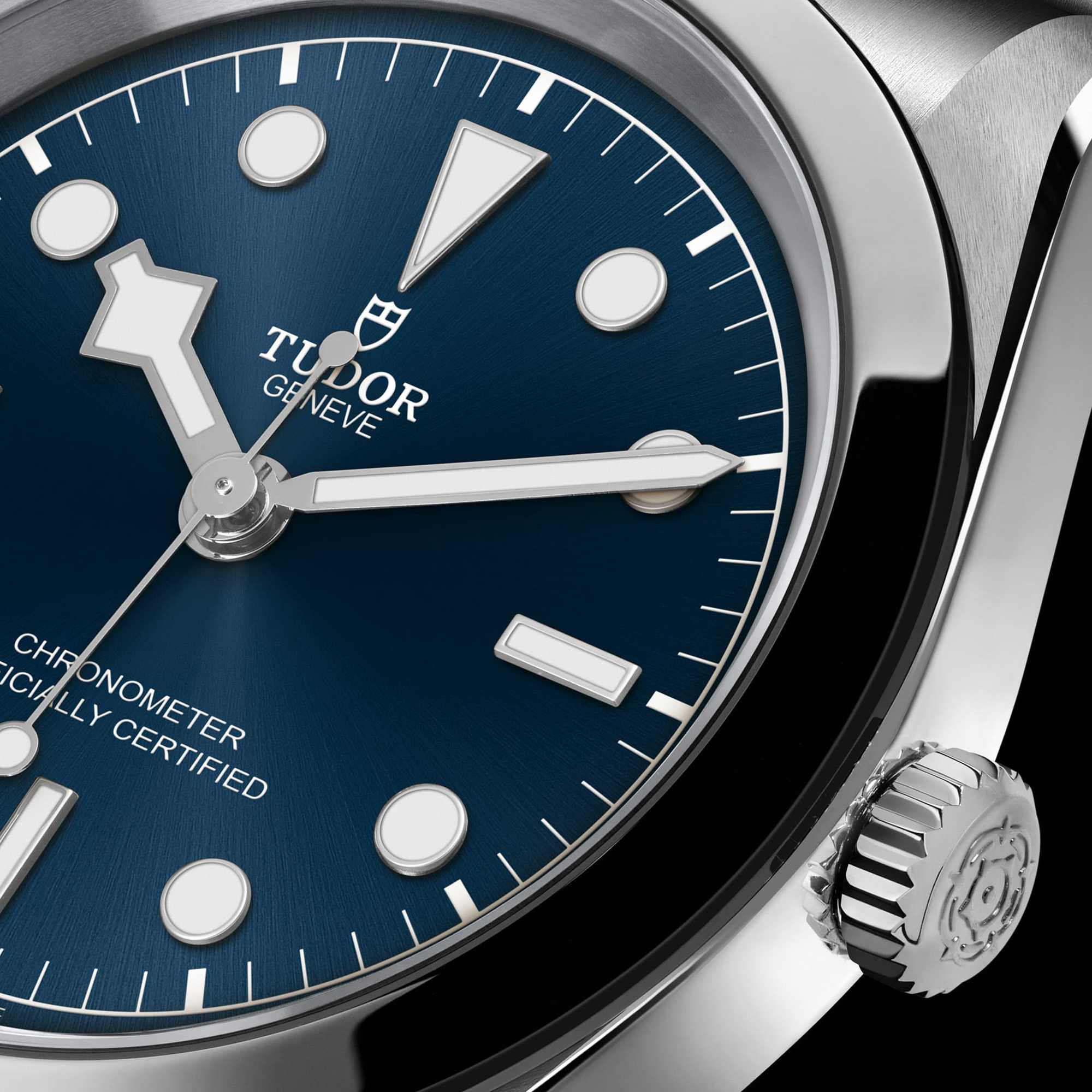 Ref. M79600-0002 - Die Black Bay 31 Modelle verleihen der Black Bay Linie eine einzigartige Ästhetik. Die abgerundeten Gehäuse zeichnen sich durch eine Oberflächenkombination aus, die die Uhr auf zeitgemäße Art und Weise charakterisiert und leicht vom Stil der legendären Funktionsuhr der Marke abweicht, um optisch und haptisch mit raffinierter, vielseitiger Unisex-Eleganz zu überzeugen. Dank der Manufakturwerke befinden sich die Modelle auf dem neuesten technischen Stand der Uhrmacherkunst. Die Black Bay 31 Modelle sind mit einem fünfreihigen Armband in Edelstahl 316L ausgestattet. Sie verfügen darüber hinaus über eine robuste Schließe in Edelstahl 316L mit dem TUDOR „T‑fit“-System zum schnellen Verstellen der Länge. Dieses praktische und ohne zusätzliche Hilfsmittel zu bedienende System bietet fünf Positionen und ermöglicht Trägern der Uhr eine direkte Einstellung des Armbands über eine Länge von 8 mm.